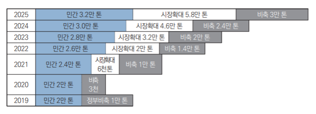 <그림> 국산 밀 자급률 5% 목표 실현을 위한 연차별 수요 계획