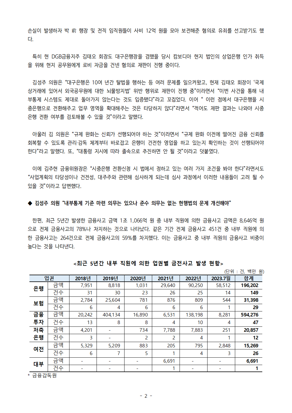 231011_보도자료_김성주_의원_금융사_내부통제_문제와_관련한_현행법_명확하게_개정하고_금융신뢰_회복할.hwp