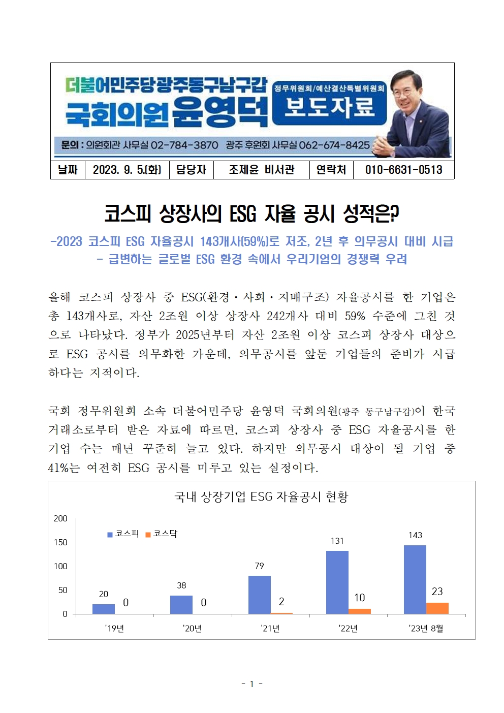 230905_윤영덕_보도자료_코스피_상장사의_ESG_자율_공시_성적은최종.hwp