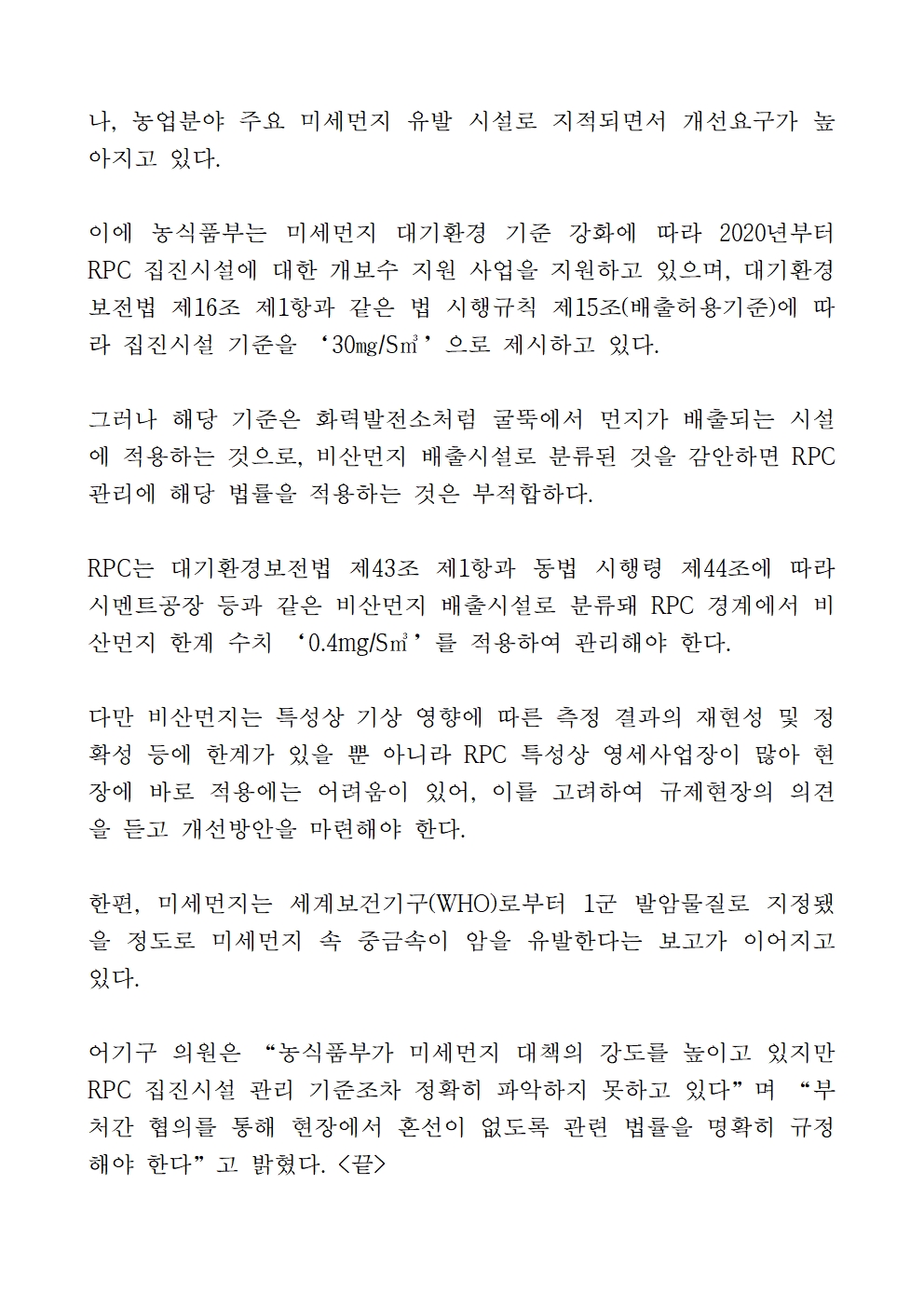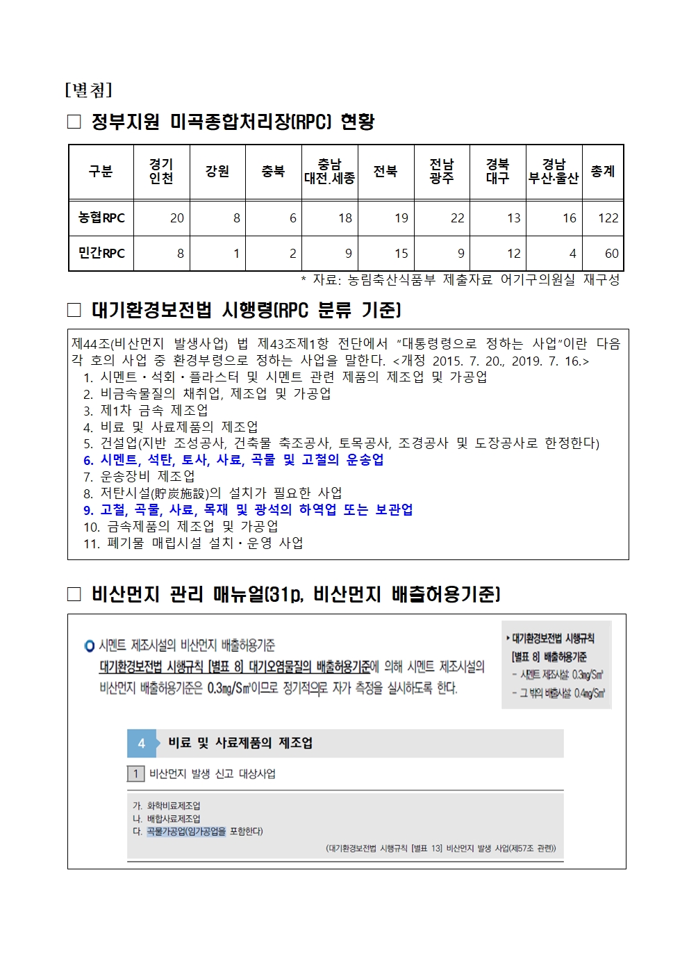 [어기구의원 국정감사 보도자료] 농식품부, RPC 집진시설 관리 적용 법률 우왕좌왕