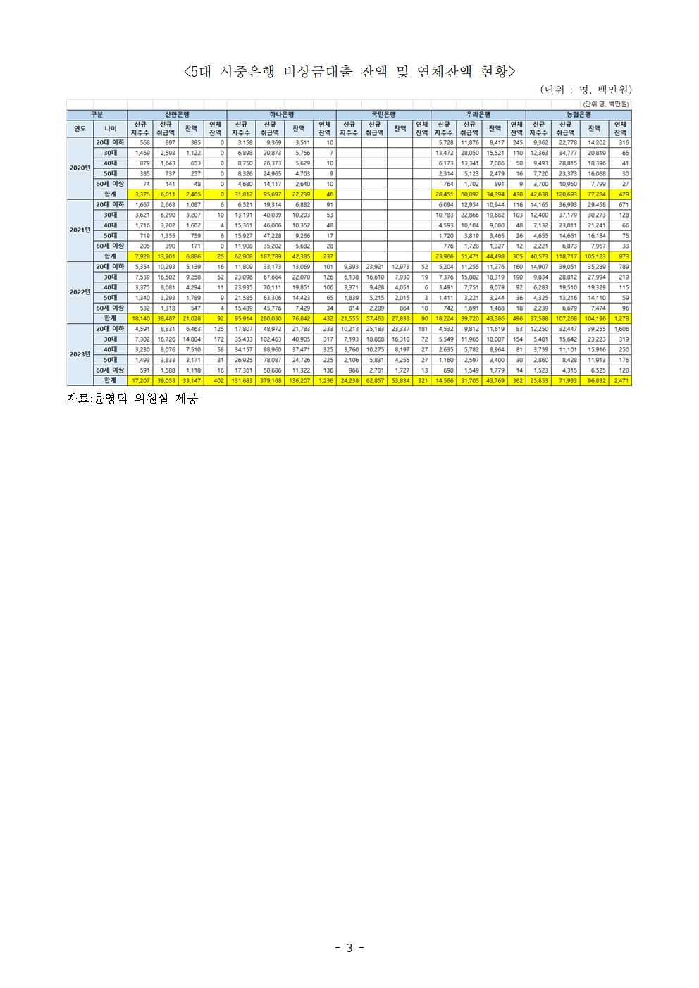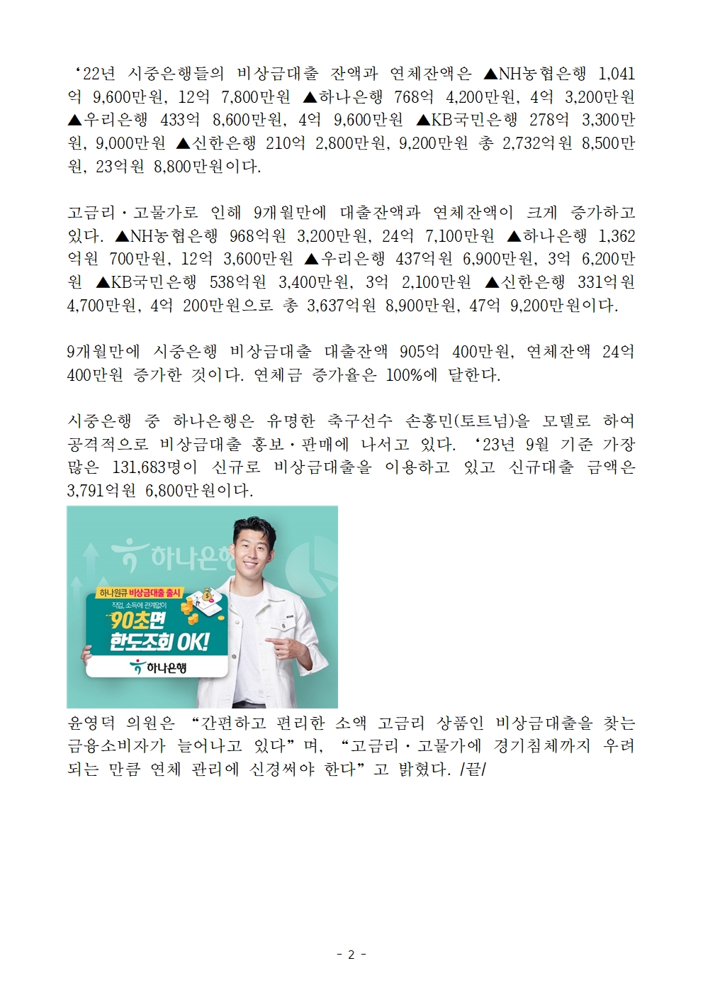 230917_윤영덕_보도자료_고금리에 시중은행 비상금대출 연체금액 급상승...hwp