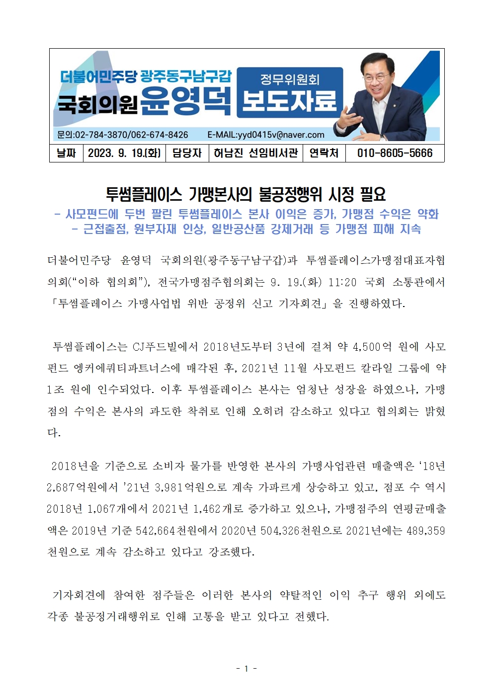 230919_윤영덕_보도자료_투썸플레이스_가맹본사의_불공정행위_시정필요.hwp