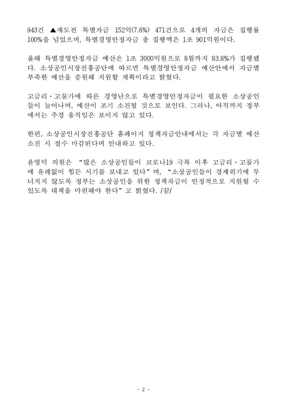230921_윤영덕_보도자료_소상공인_지원_위기_8개월만에_특별경영안전자금_동났다.hwp