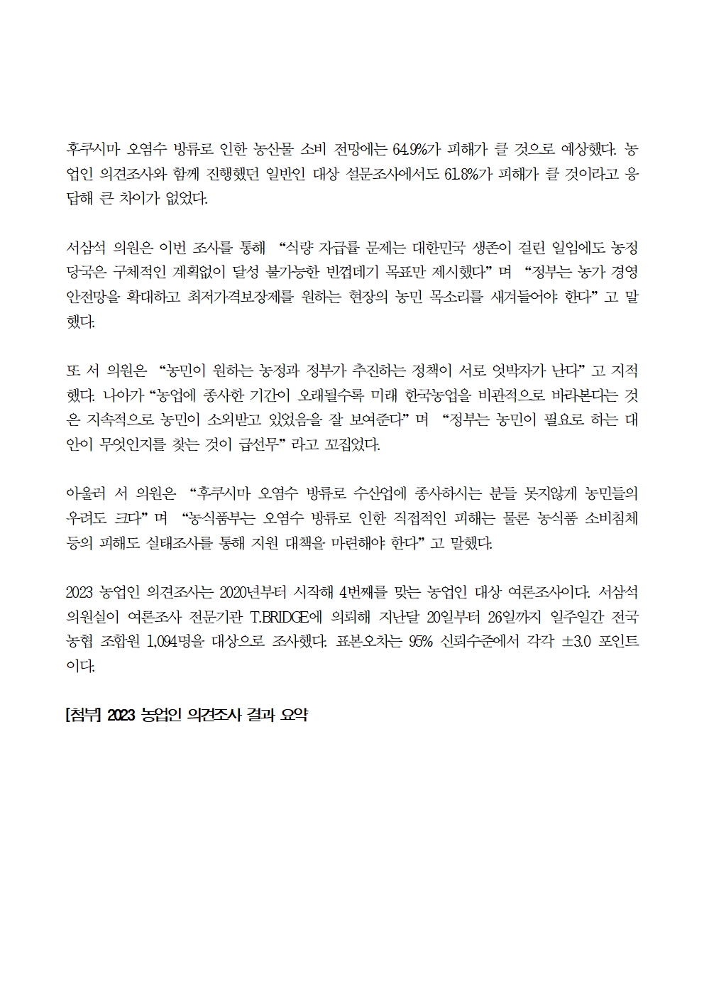 231011_서삼석“정부 정책에 농민의 목소리가 없다”.hwp