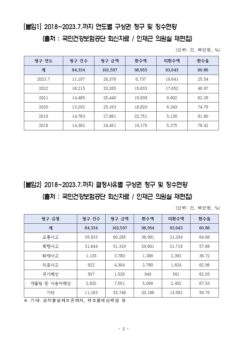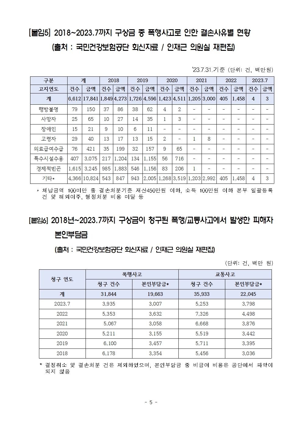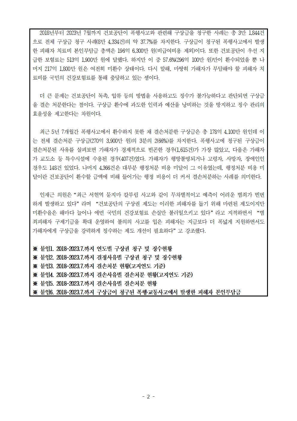 [인재근의원실 보도자료] 끊이지 않는 데이트폭행, 묻지마폭행! 가해자가 내야 할 피해자 치료비에 줄줄 새는 건강보험료