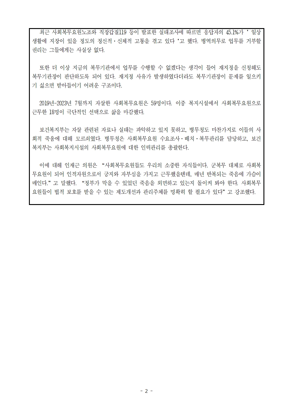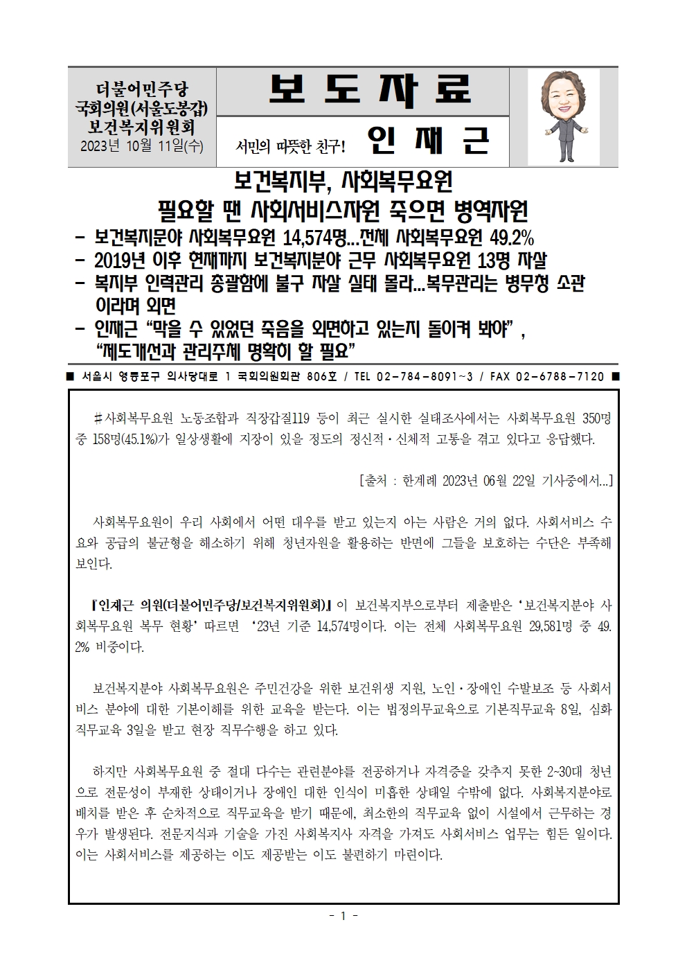 231011_[인재근의원실 보도자료] _보건복지부 사회복무요원 필요할땐 사회서비스자원 죽으면 병역자원.hwp