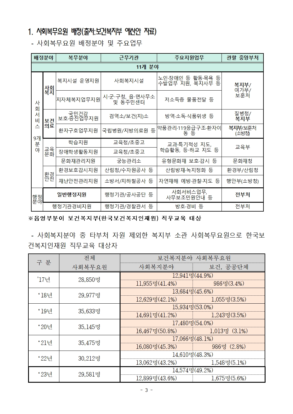 [인재근의원실 보도자료] 보건복지부, 사회복무요원 필요할 땐 사회서비스자원 죽으면 병역자원