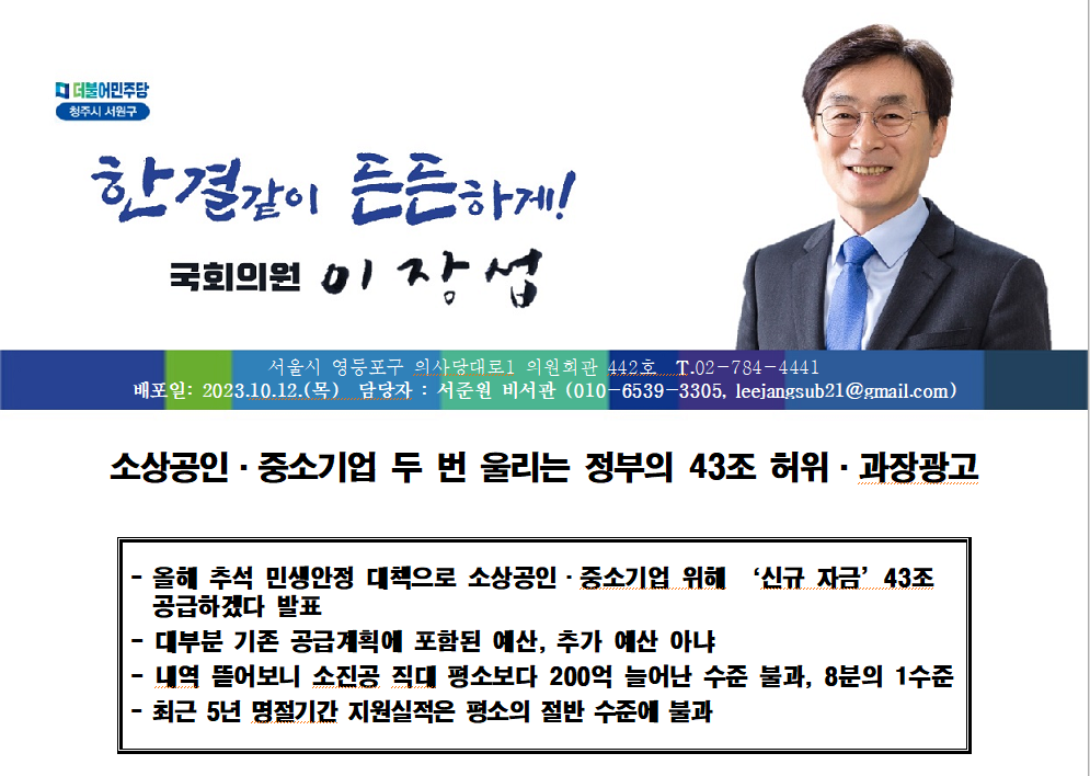 [이장섭의원_231012] 소상공인,중소기업 두 번 울리는 정부의 43조 허위,과장광고