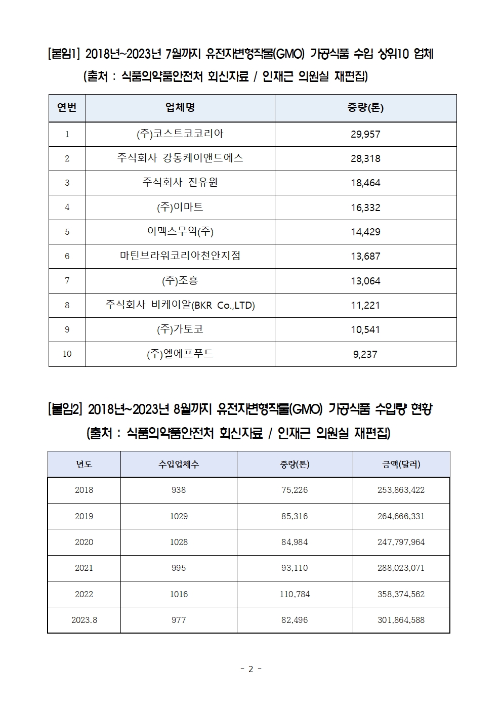 231013_[인재근의원실 보도자료]_대형마트부터 프렌차이즈까지...우리 일상에 스며든 GMO 가공식품.hwp
