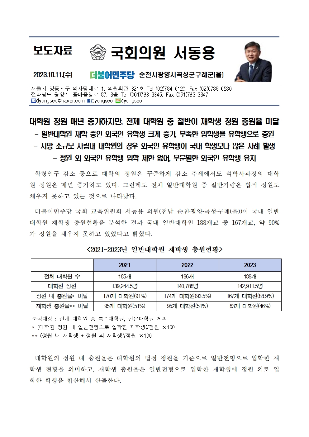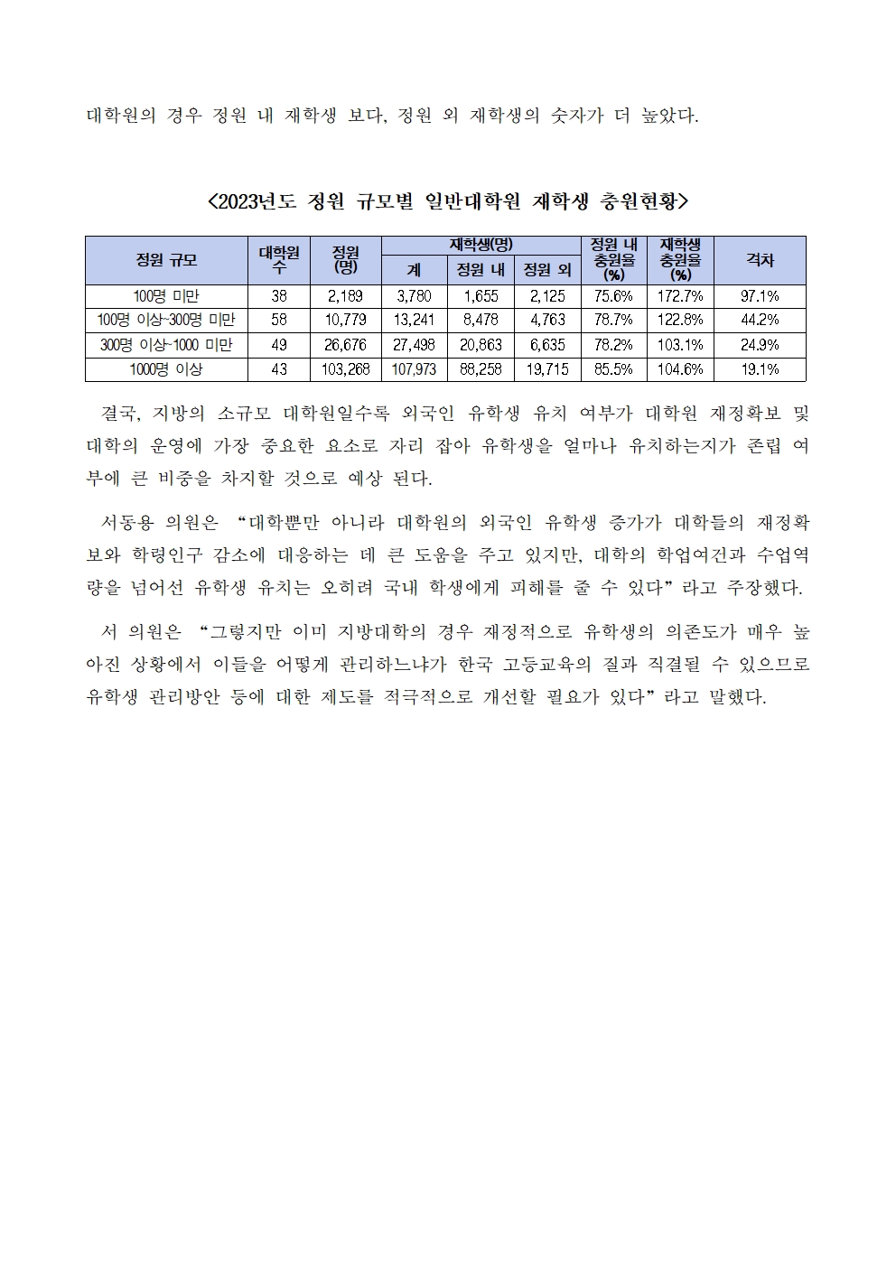 16. 231011_국감_서동용_대학원_정원_매년_증가하지만_전체_대학원_중_절반이_정원_충원율_미달.hwp