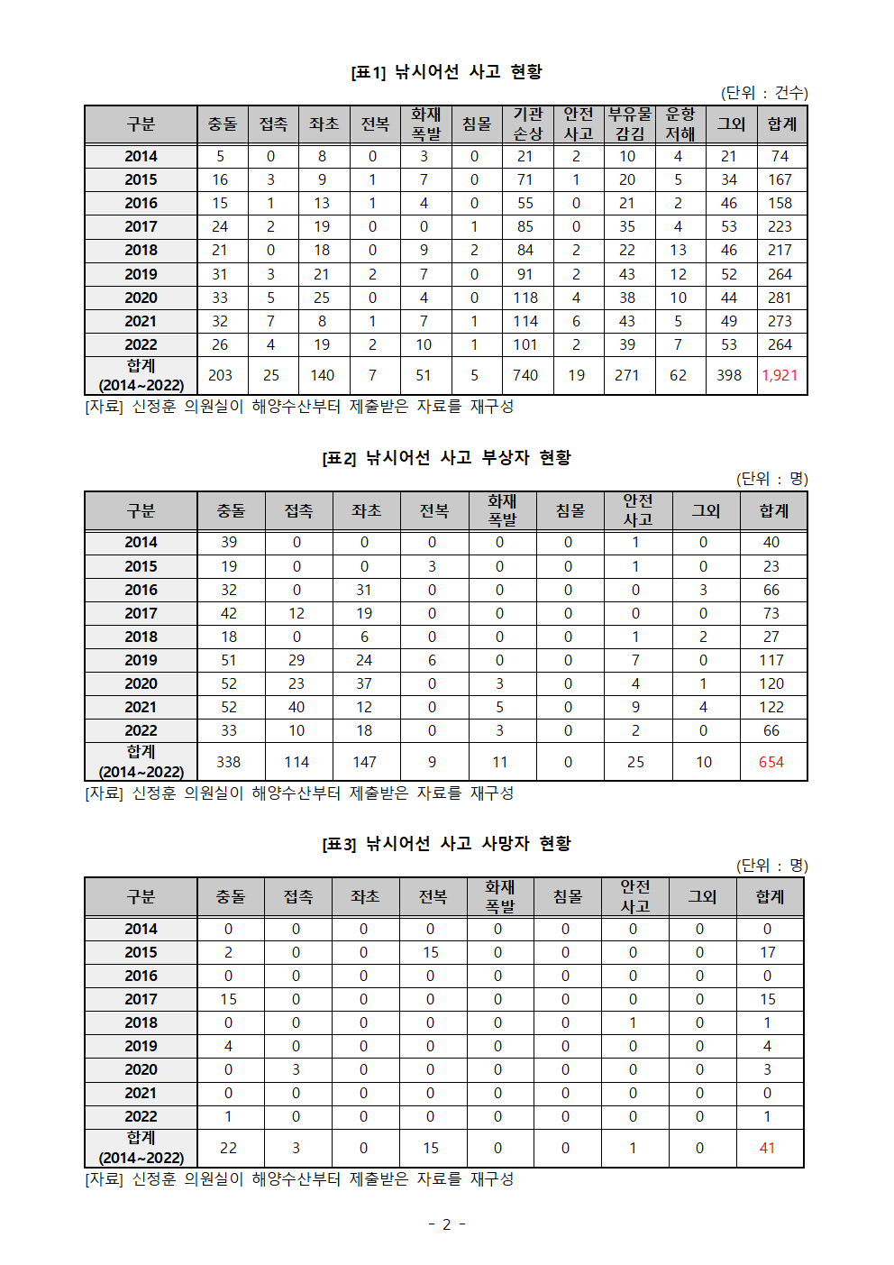 [신정훈 의원실 보도자료] 바다낚시 인구 520만명... 사고로 ‘매년’ 5명 사망, 73명 부상