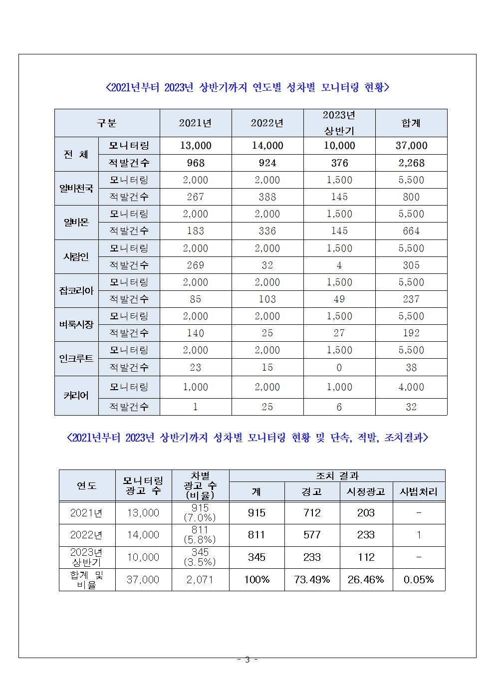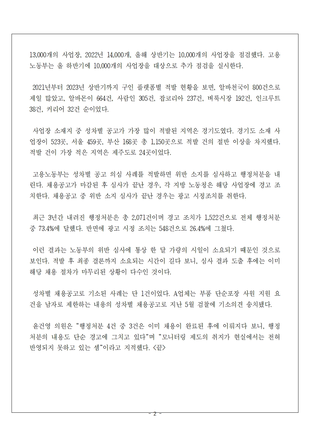 [국회의원 윤건영 보도자료] ‘부품 포장 남자만’최근 3년간 성차별 채용공고 알바천국이 제일 많아!