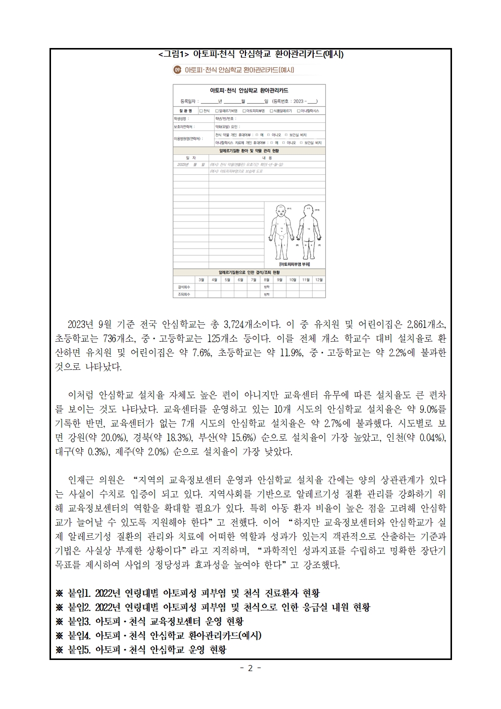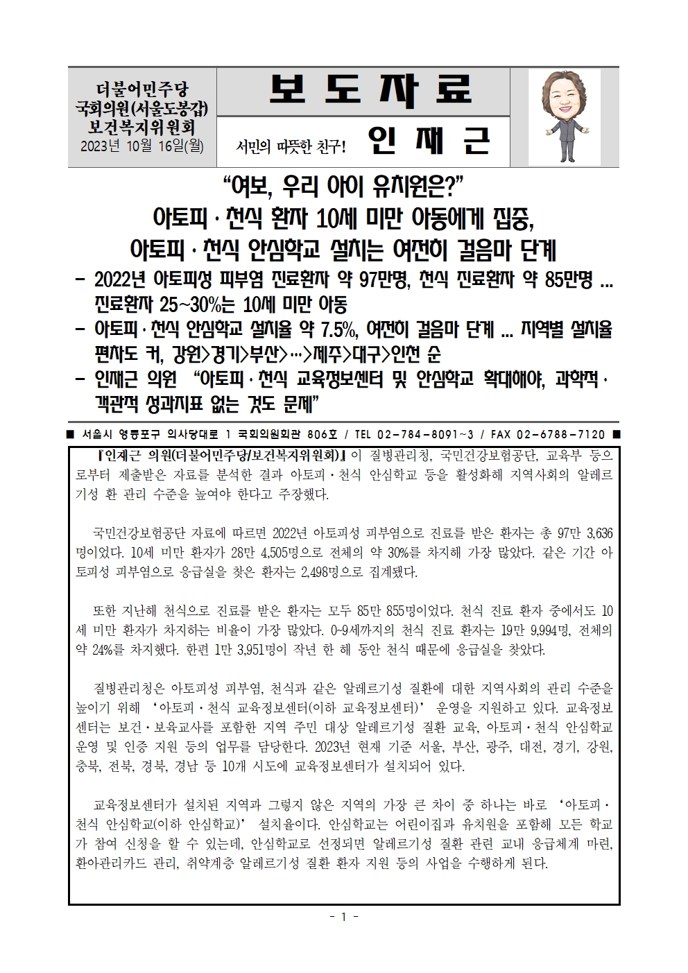 [인재근의원실 보도자료] “여보, 우리 아이 유치원은?” 아토피·천식 환자 10세 미만 아동에게 집중, 아토피·천식 안심학교 설치는 여전히 걸음마 단계