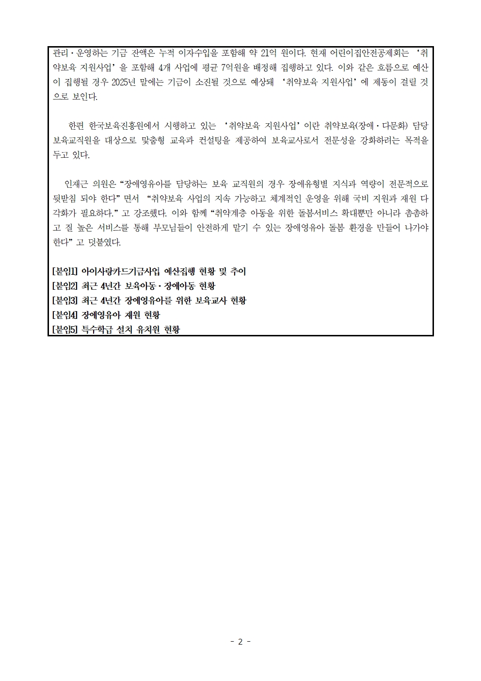 [인재근의원실 보도자료] 어린이집안전공제회 기금 고갈 우려... 장애영유아 두 번 울리나