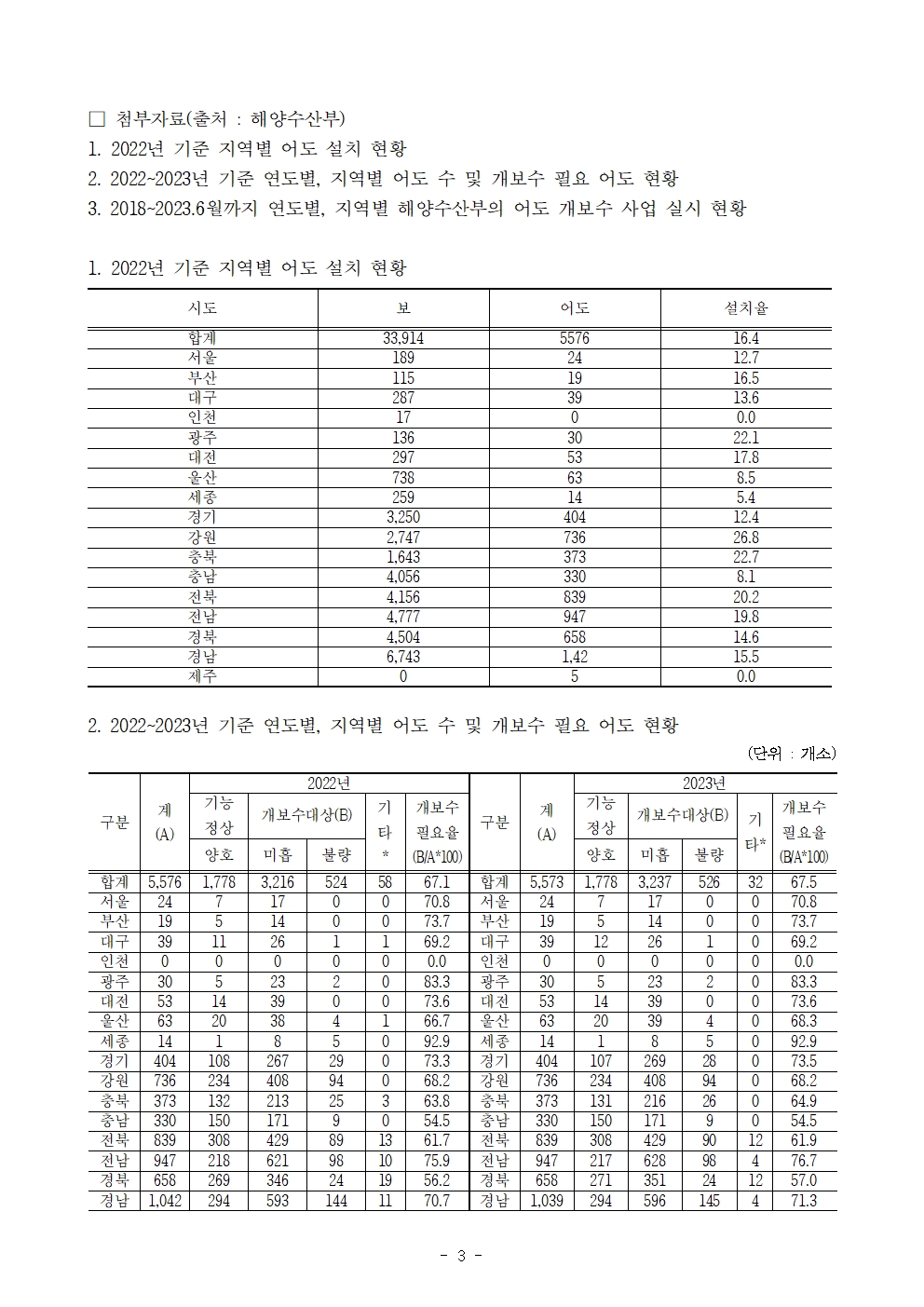 231012 [윤준병 의원 국정감사 보도자료] 윤준병 의원 작년 기준 어도 설치율 16.4% 불과하고 70%가 개보수 필요.hwp