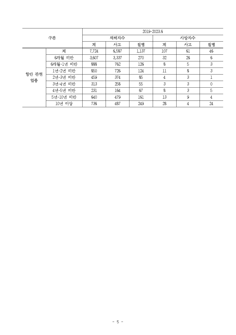 [윤준병 의원 국정감사 보도자료] 윤준병 의원, 항만업종 산업재해 절반은 근속기간 6개월 미만 노동자