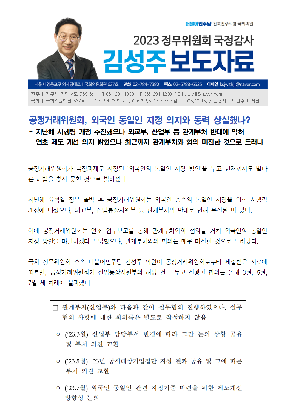 231016_보도자료_김성주의원_외국인_동일인지정_제도개선미비_지적수정.hwp