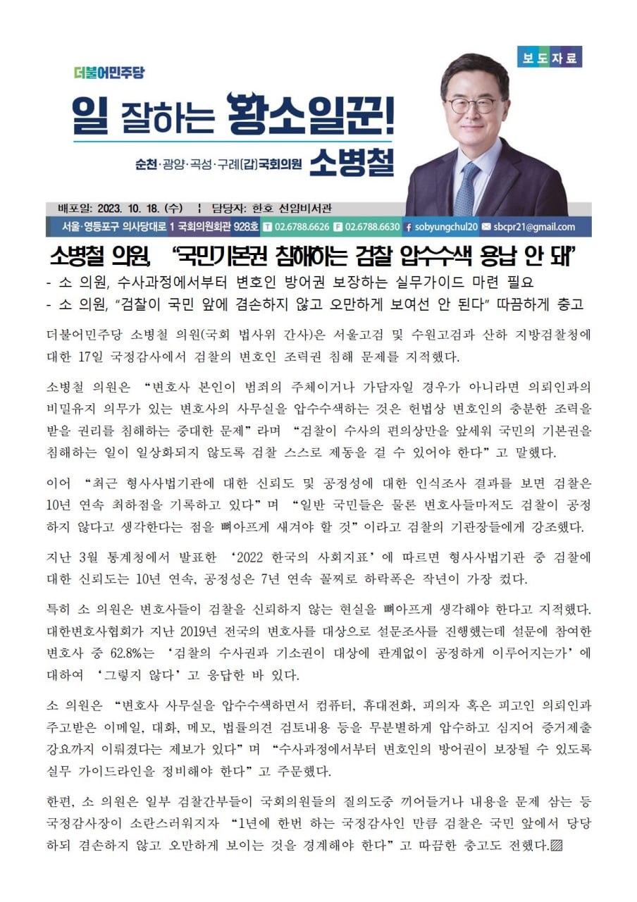 231018_소병철의원_국민기본권_침해하는_검찰_압수수색_용납_안_돼.hwp