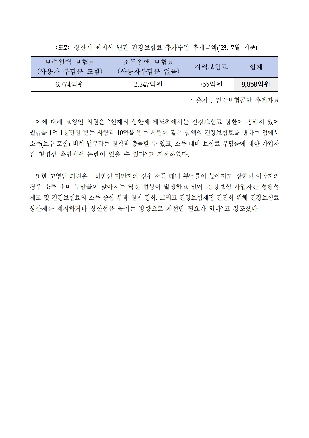 2023_1017_보도자료_초고소득자에게만_유리한_건강보험료_상한제에_대한_개선_필요.hwp