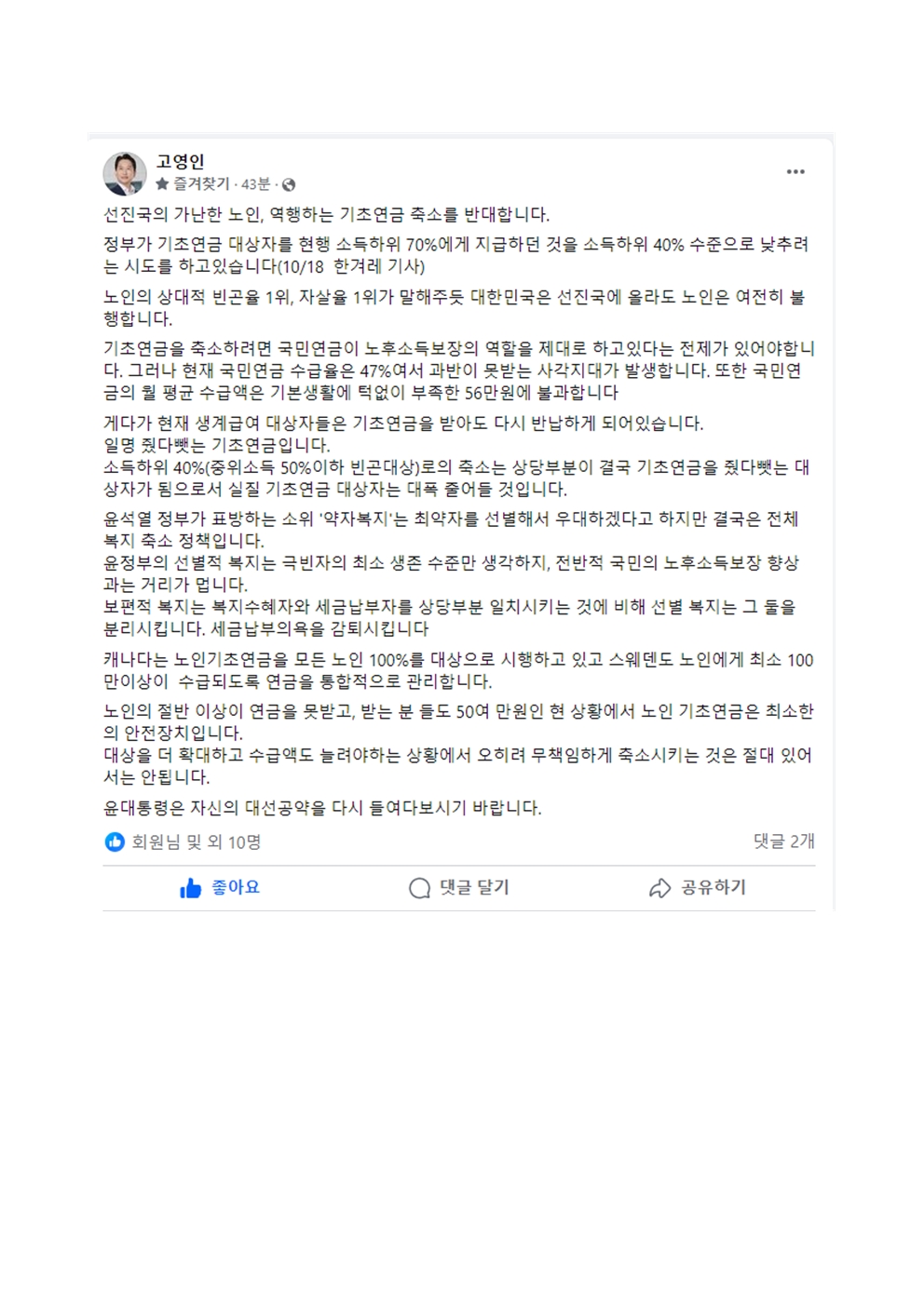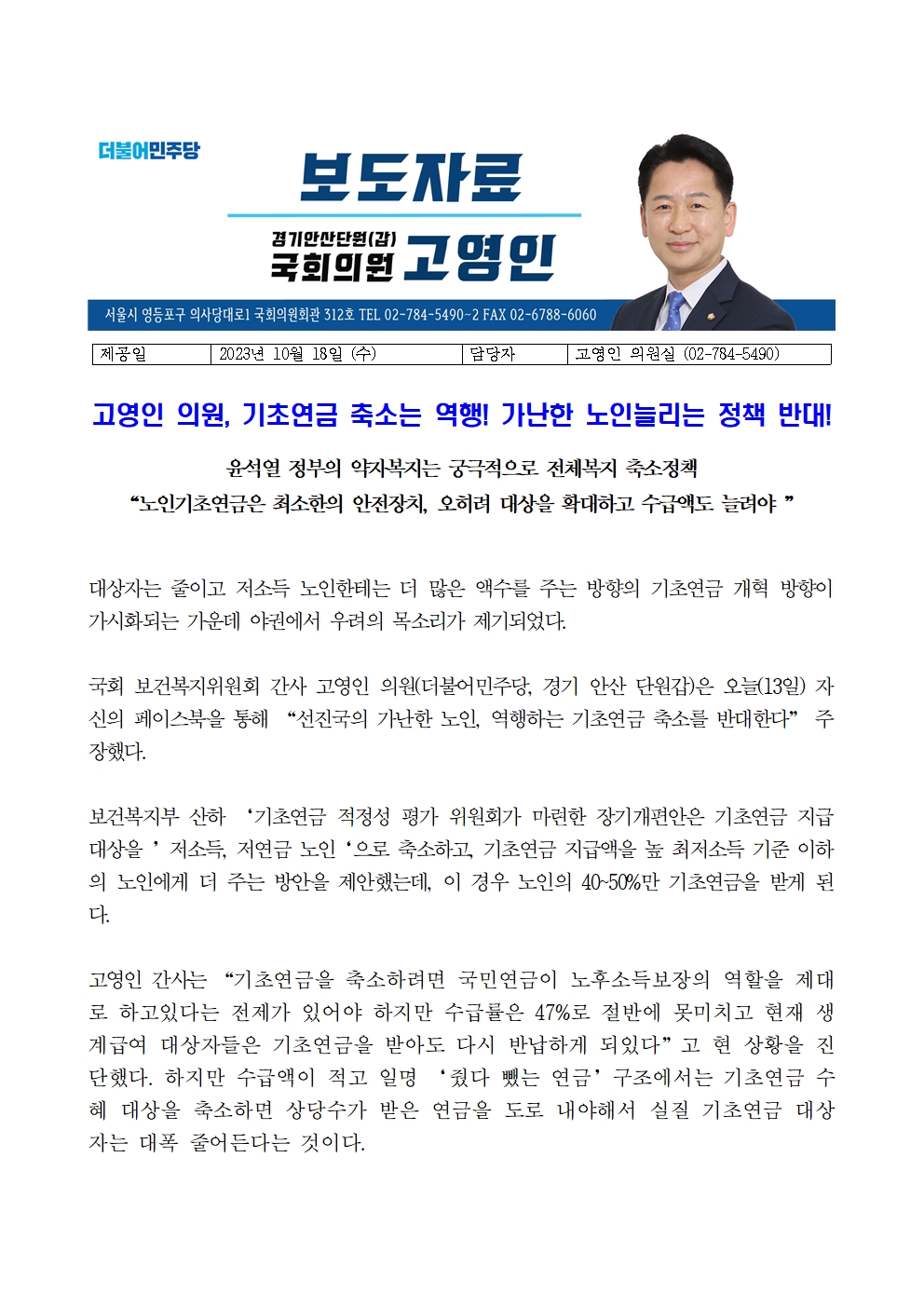 2023_1018_보도자료_고영인_의원__기초연금_축소는_역행!_가난한_노인늘리는_정책_반대!__.hwp