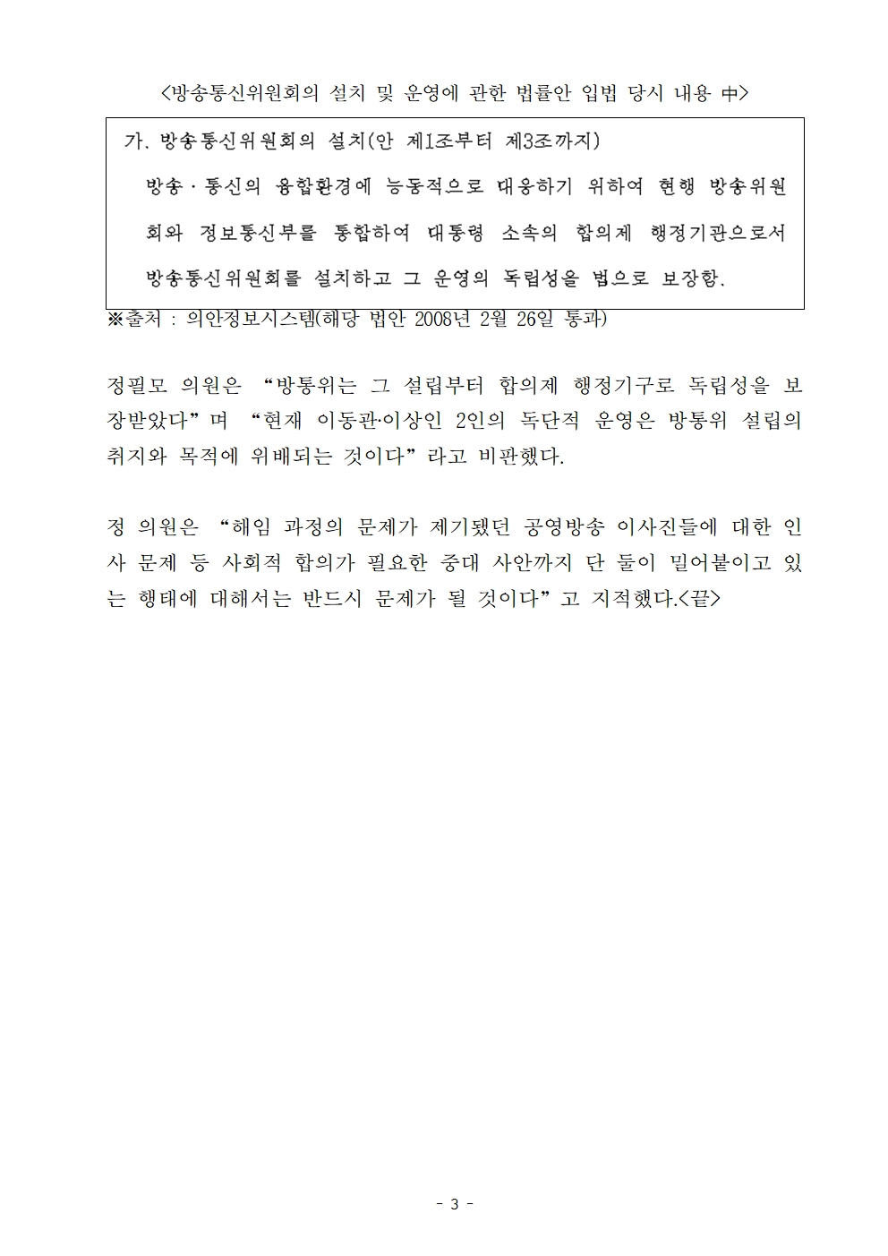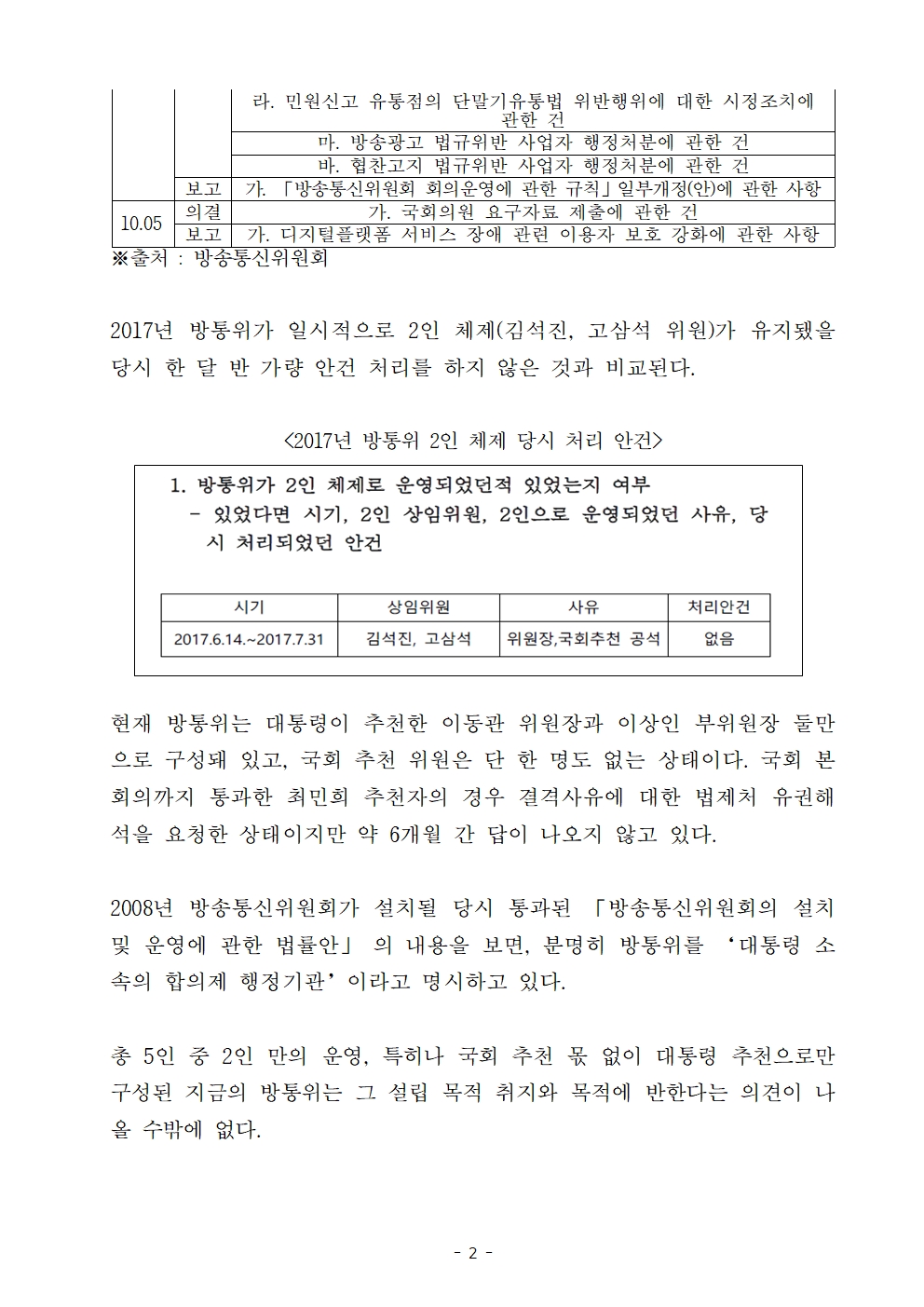[정필모 의원 보도자료] 이동관‧이상인 2인 체제, 2017년 2인 체제와 비교하면?