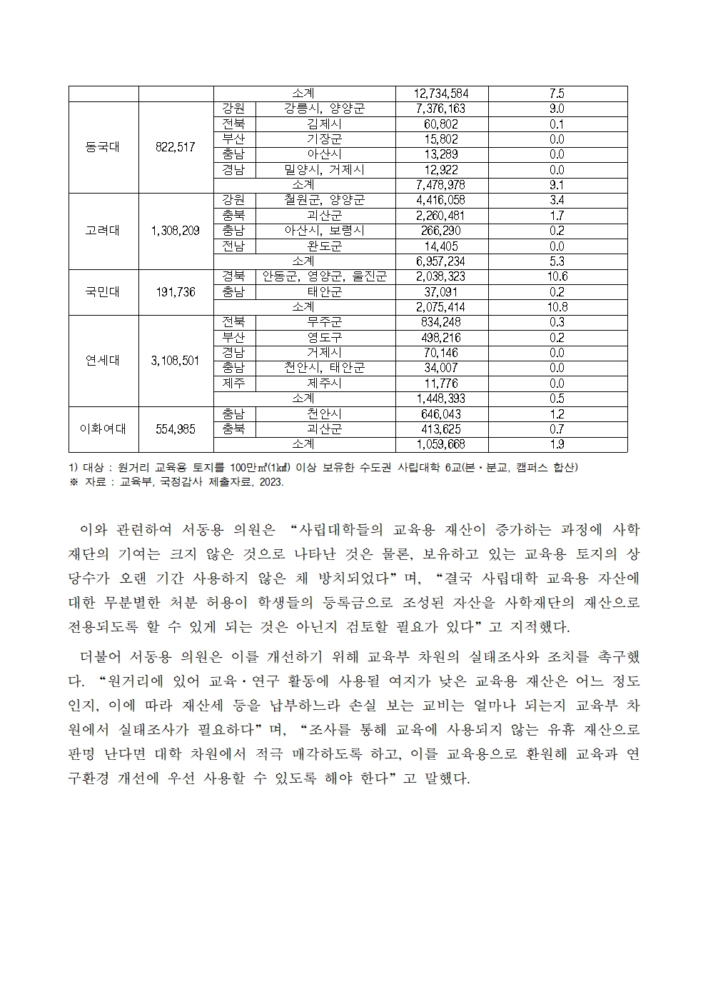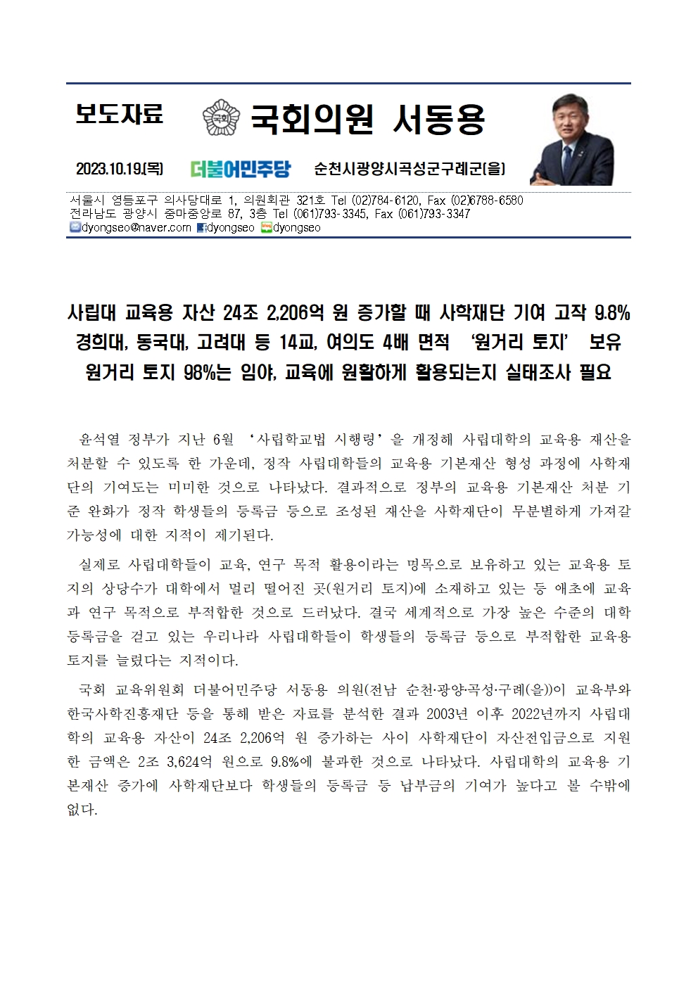 231019_국감_서동용_사립대_교육용_자산_24조_2206억원_증가할_때_사학재단_기여_9_8%.hwp