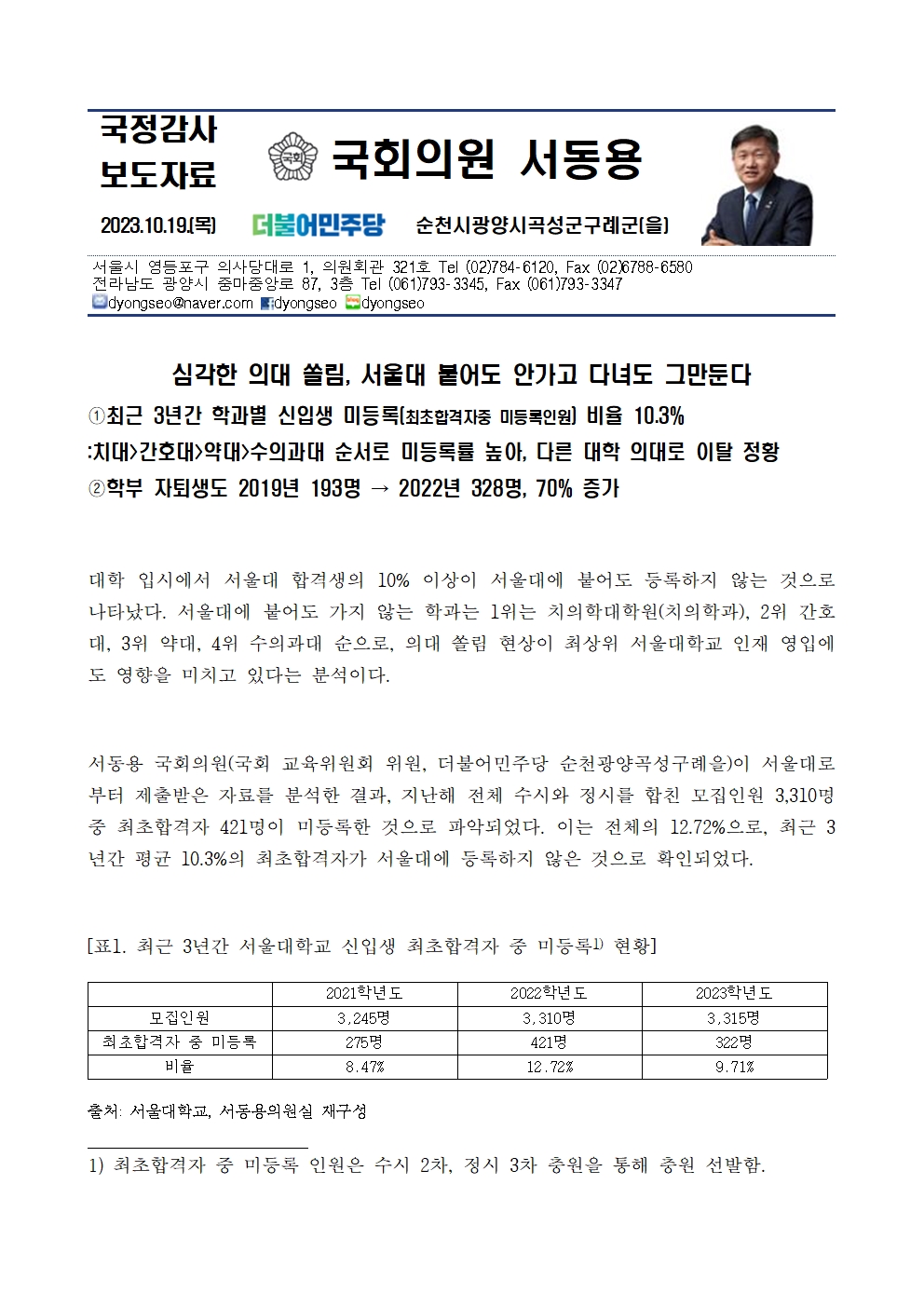 231019_국감보도자료_국회의원서동용_서울대학교신입생미등록.hwp