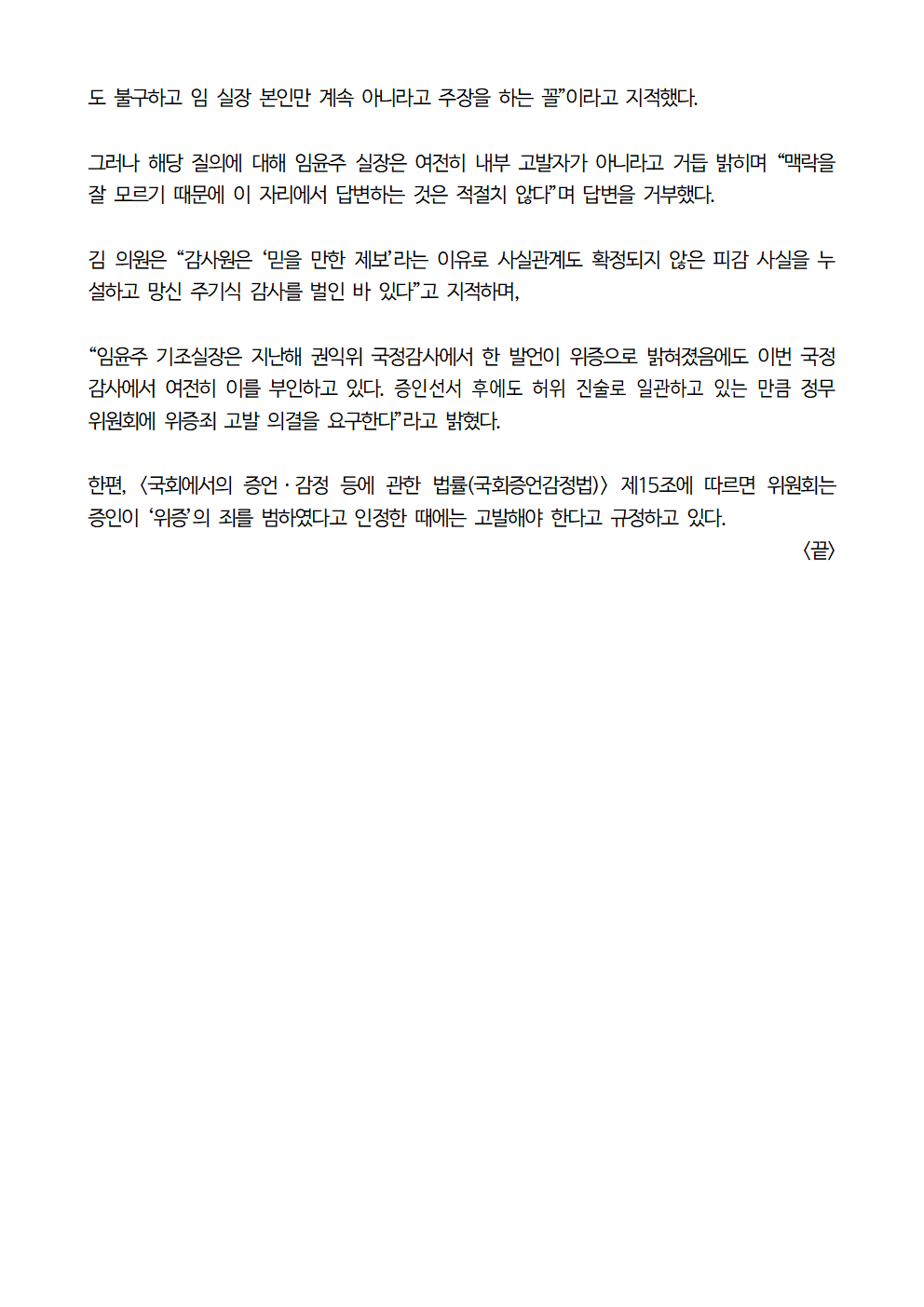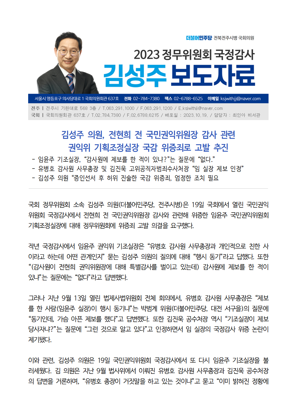 231019_보도자료_김성주의원실_전현희_전_국민권익위원장_감사_관련_임윤주_기조실장_위증죄_고발해야_최종.hwp