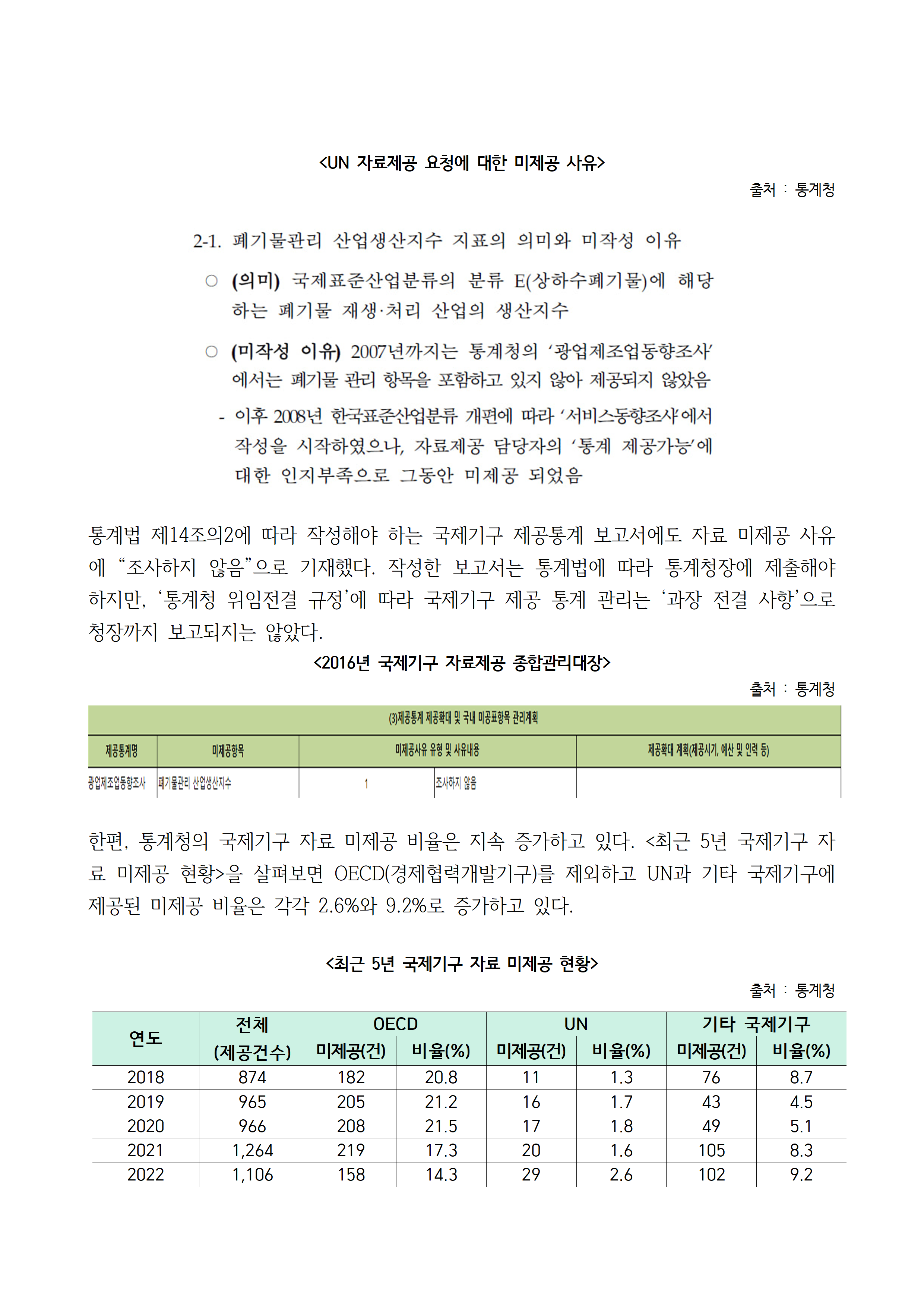 231006_보도자료_김주영_의원_통계청 자료 있는데도 못 준다 UN 폐기물관리 산업생산지수 요청에 통계청 ‘인지 부족’으로 6년간 제공 안해 .hwp