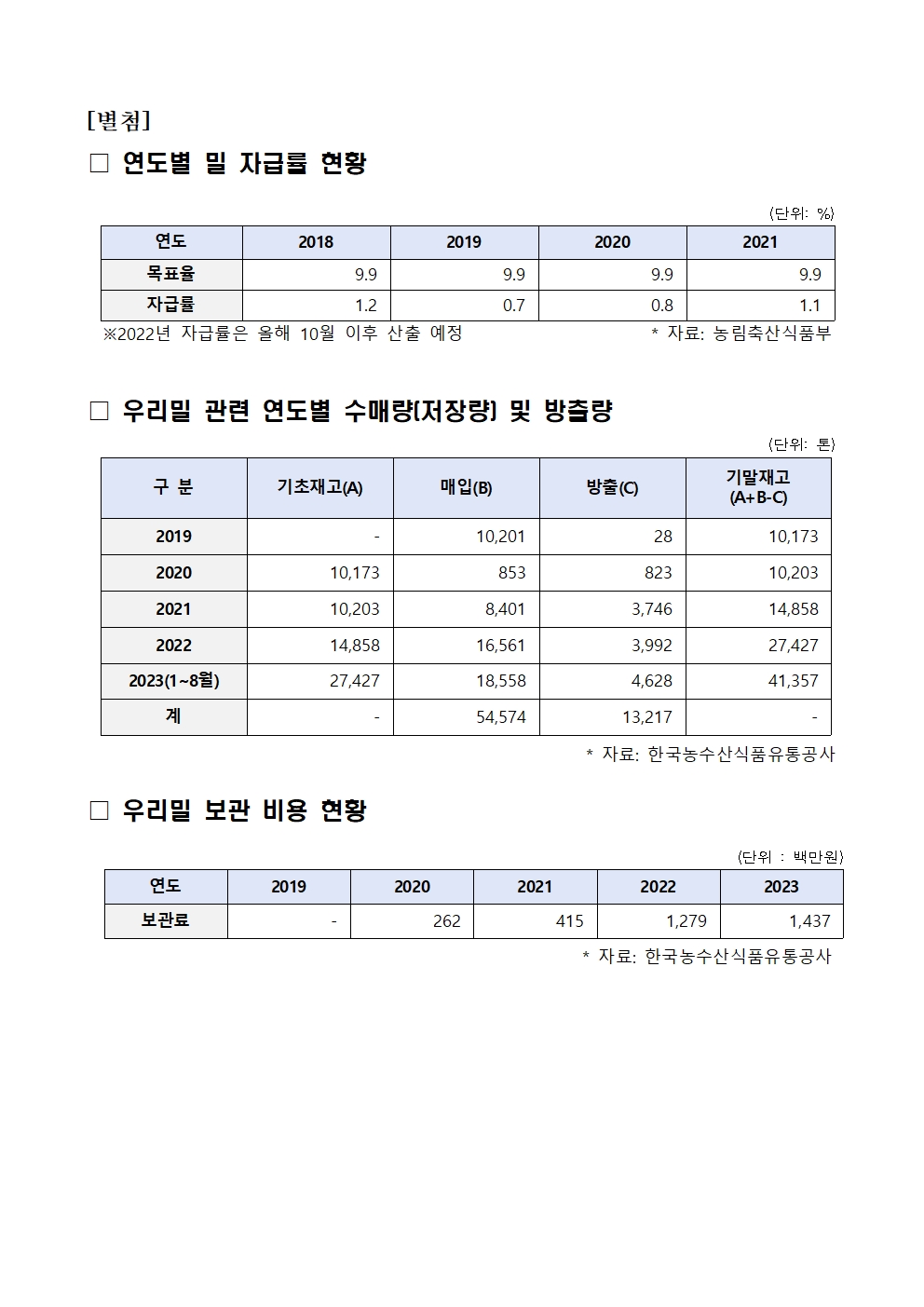 [어기구의원 국정감사 보도자료] 수요없는 우리밀, 보관 비용만 34여억원