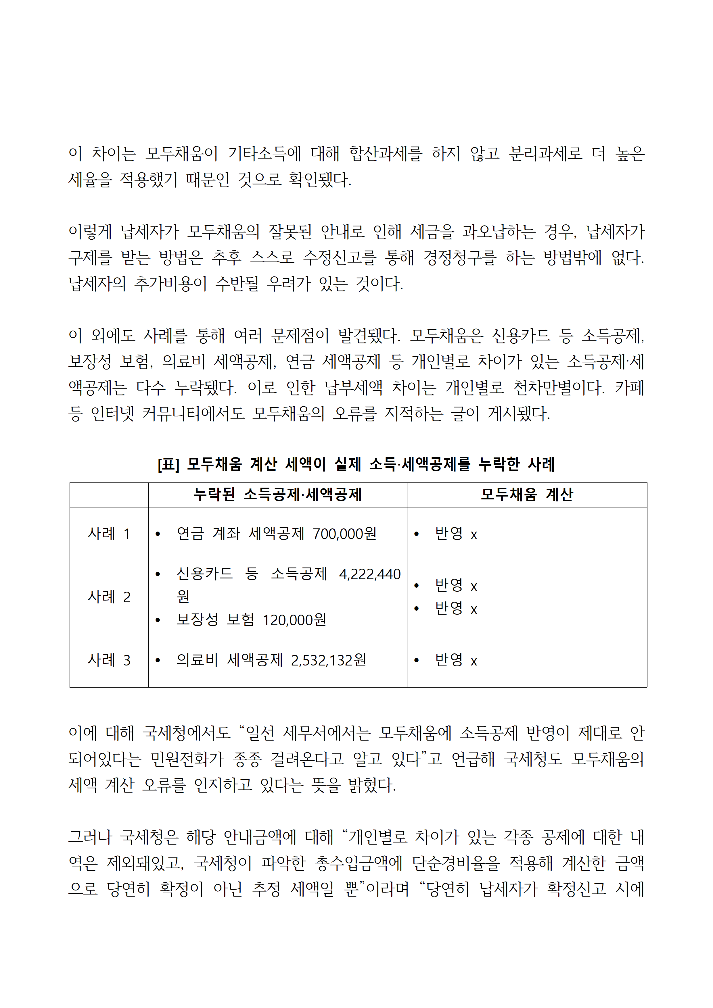 [김주영 의원 국감보도자료] 640만명이 이용하는 모두채움 서비스 국세청이 써준 대로 냈다가 세금 더 많이 낸다
