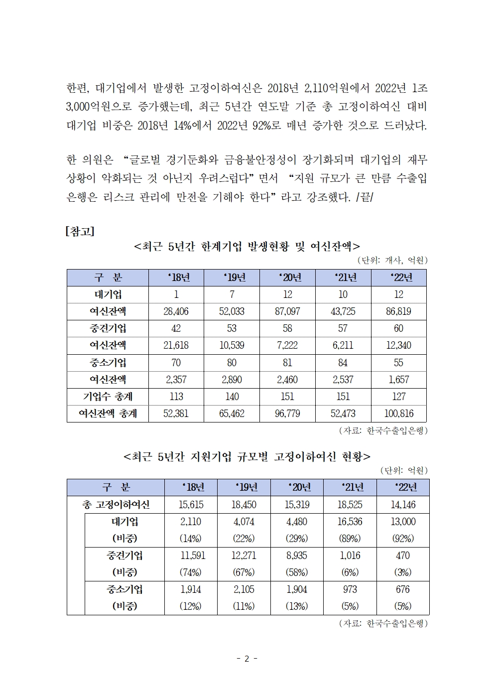 [국회의원 한병도 국감 보도자료] 수출입은행이 지원한 대기업 12곳, 3년째 영업이익보다 이자비용이 많아