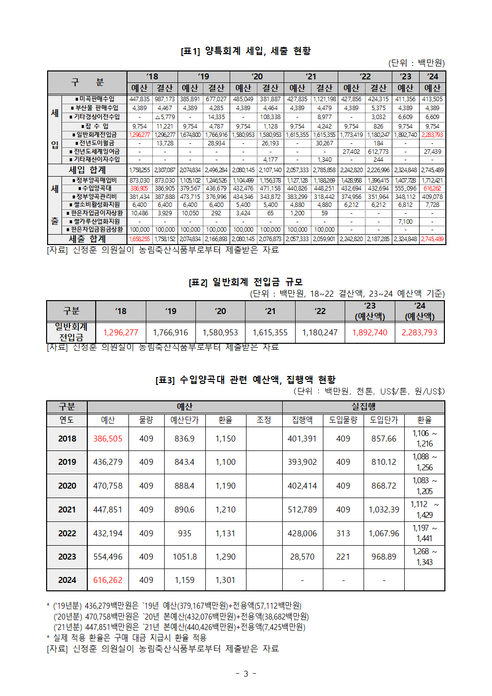 [신정훈 의원 보도자료] 양곡관리특별회계 적자 심각, 농민 울리는 ‘비용’ 상당수
