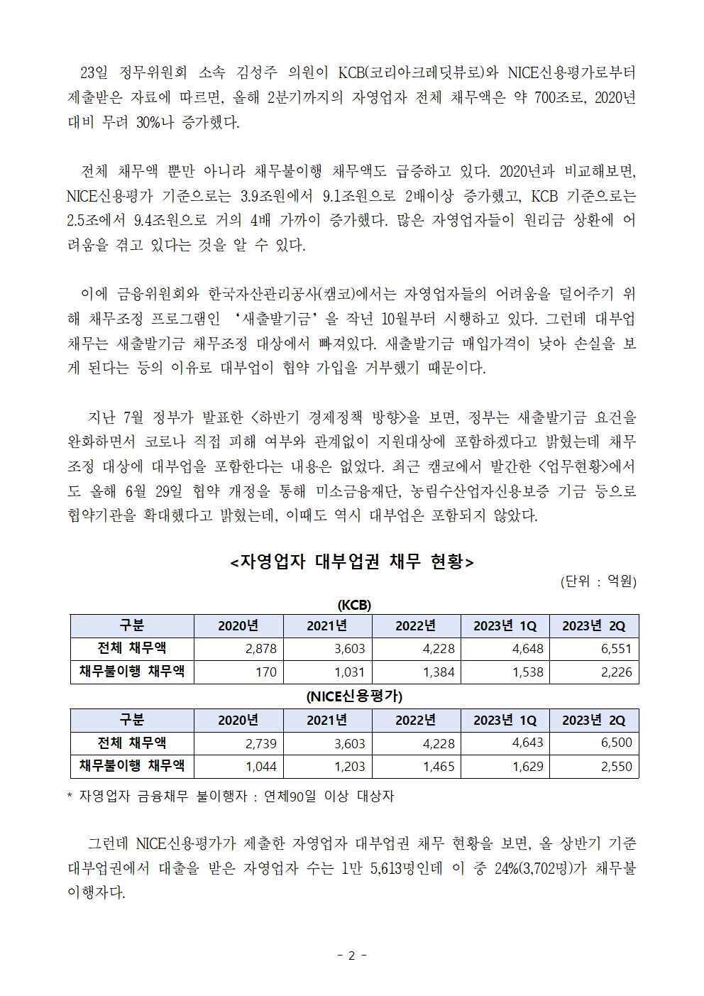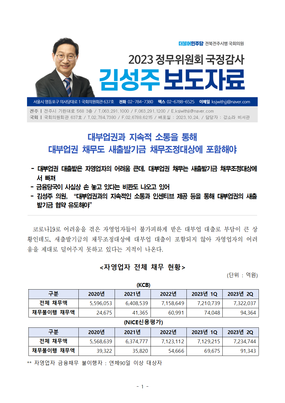 [김성주의원 보도자료] 대부업권과 지속적 소통을 통해 대부업권 채무도 새출발기금 채무조정대상에 포함해야