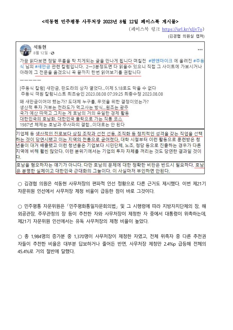 [국회의원 김경협 국정감사 보도자료] 민주평통 자문위원 증원 내역 살펴보니...대구·경북 권역 대폭 증가 vs 호남·충청은 홀대.hwp