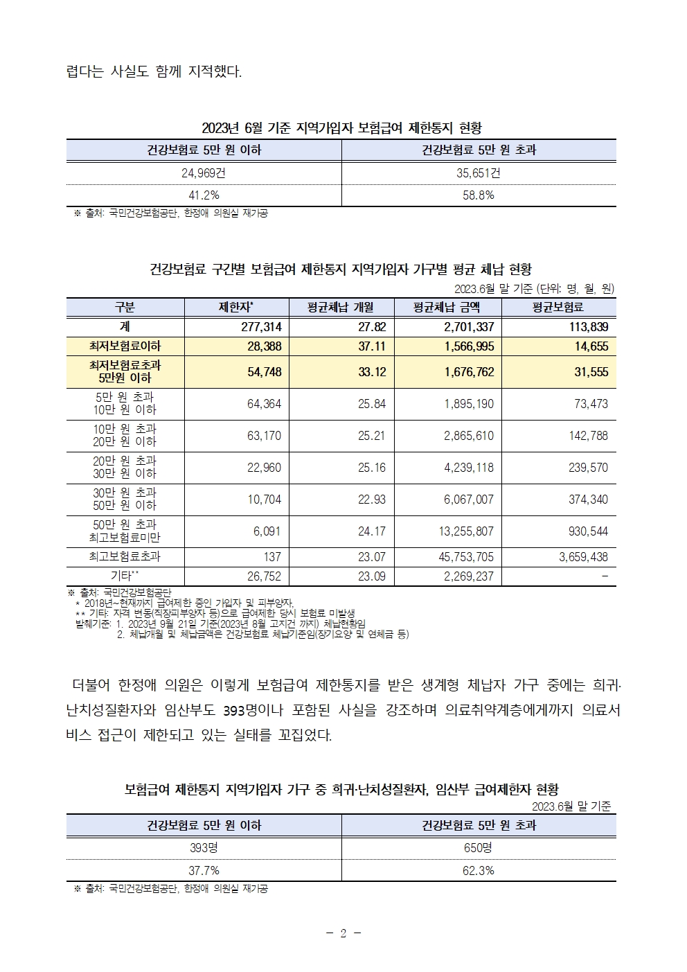 [한정애의원 보도자료] 건보료 체납자 급여 제한 기준 완화 검토, 8만 여명 급여제한 해제된다