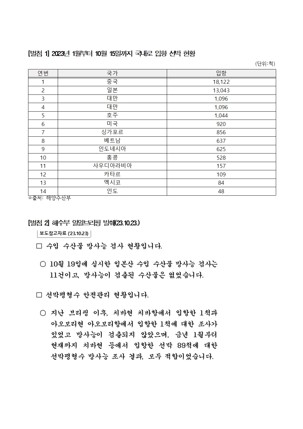 231025_[서삼석 국회의원] 일본에서 입항하는 선박에 대한 평형수 검사 고작 1%도 안돼(최종).hwp