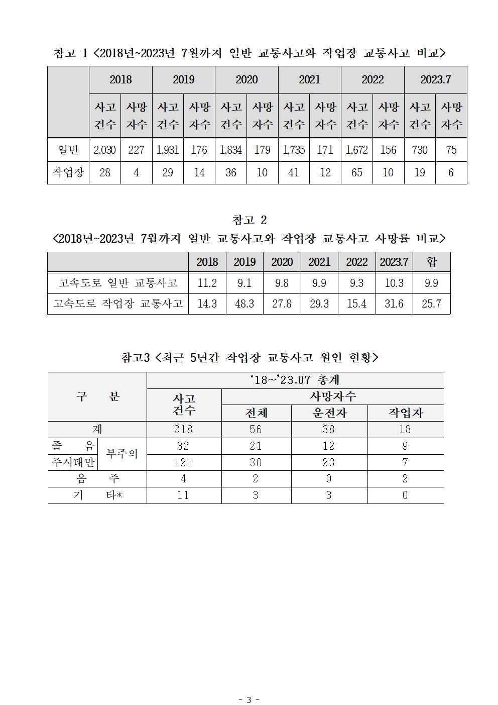 [최인호 의원 보도자료]고속도로 작업장 교통사고 사망율, 일반 교통사고의 2.6배