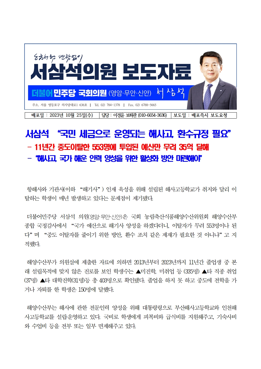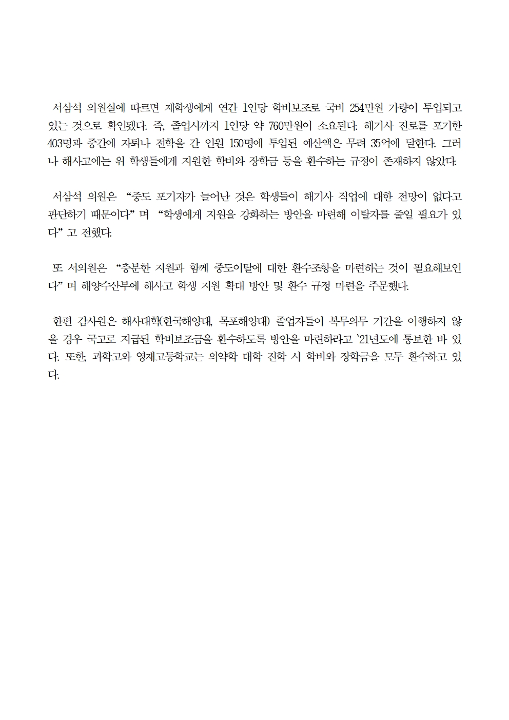 231025_서삼석 “국민 세금으로 운영되는 해사고 환수규정 필요”.hwp