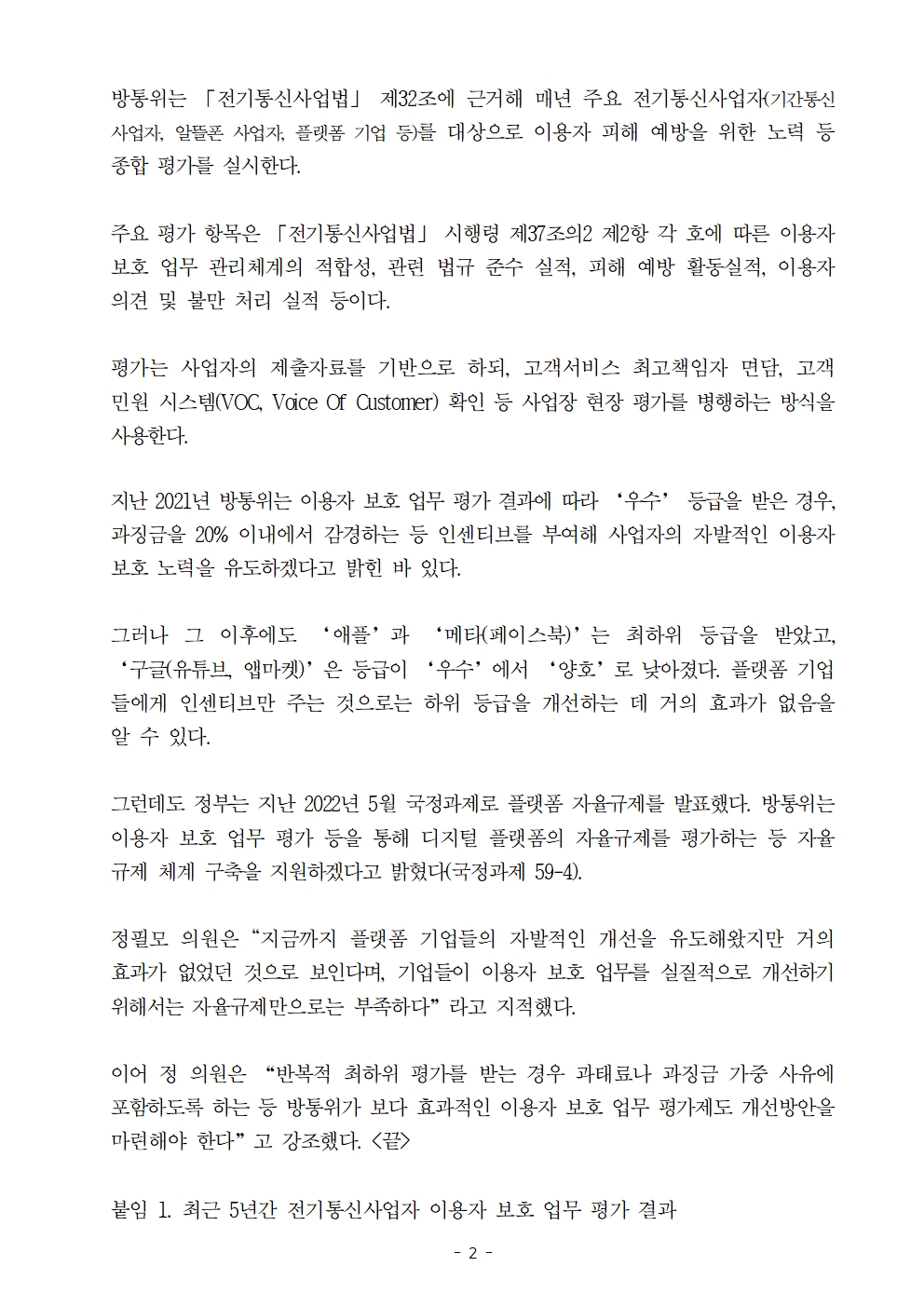 231020_보도자료_방통위_이용자보호업무_평가제도_플랫폼기업_개선_효과_없어.hwp