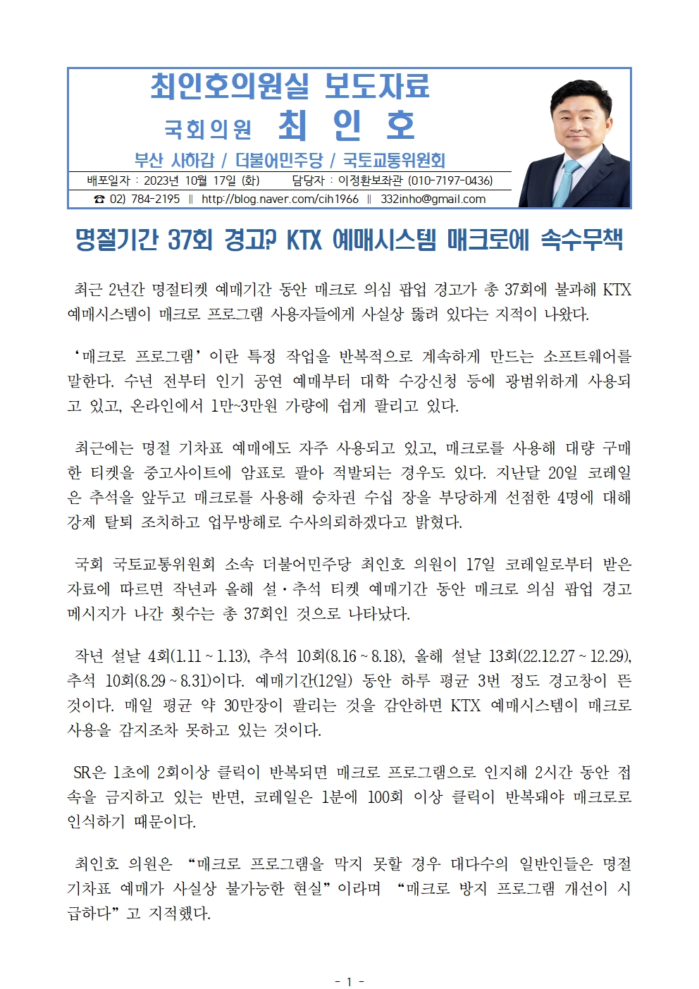 최인호_명절기간_37회_경고_KTX_예매시스템_매크로에_속수무책.hwp