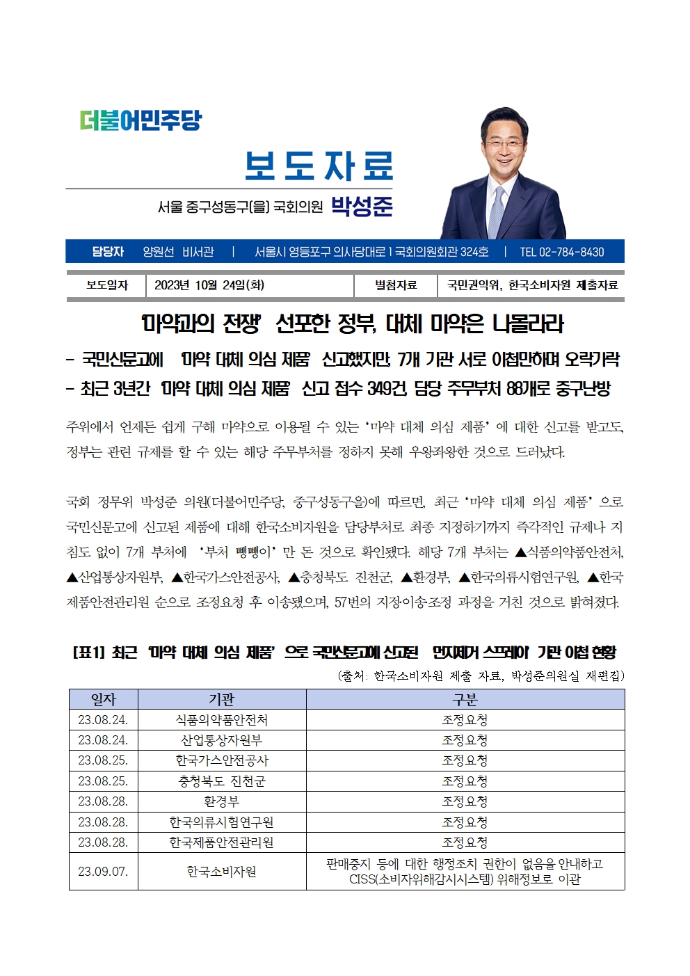 [국회의원 박성준_보도자료]231024_‘마약과의 전쟁’선포한 정부 대체 마약은 나몰라라.hwp