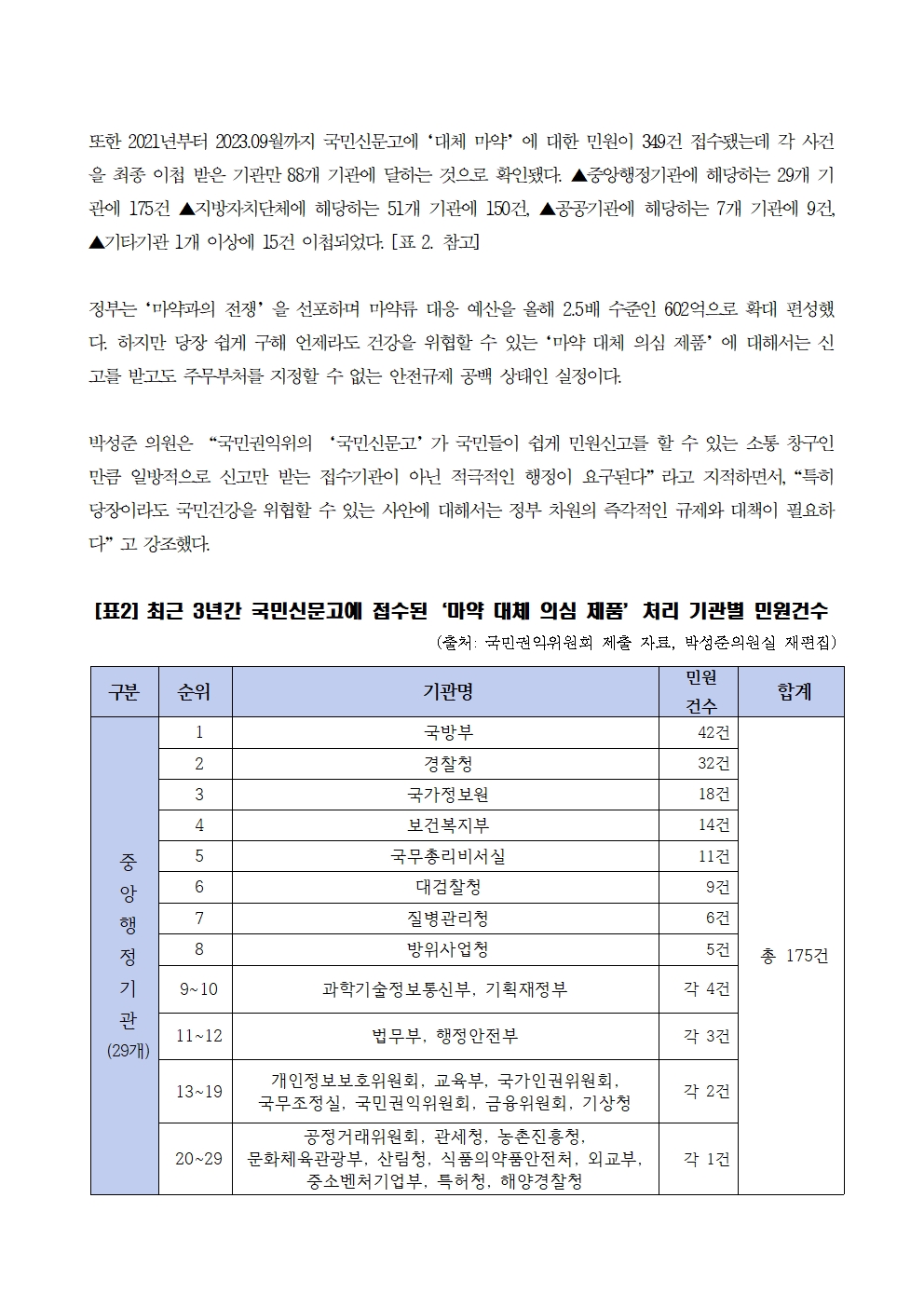 [국회의원 박성준_보도자료]‘마약과의 전쟁’선포한 정부, 대체 마약은 나몰라라