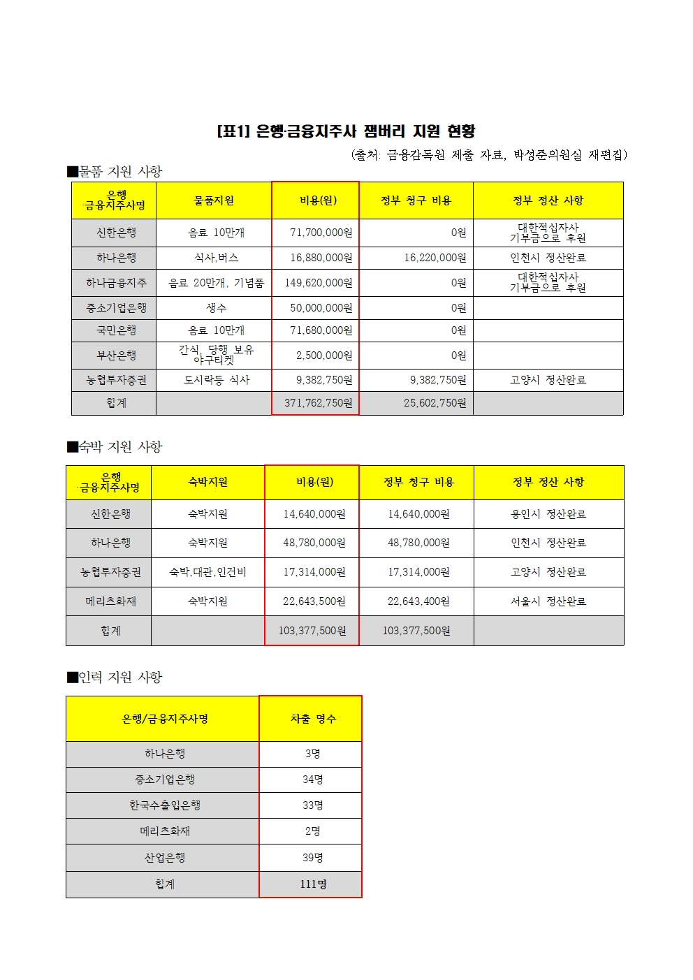 [국회의원 박성준_보도자료]231026_소문난 잼버리에 마실 것도 없었다_은행권 뒤처리비용에 5억원.hwp