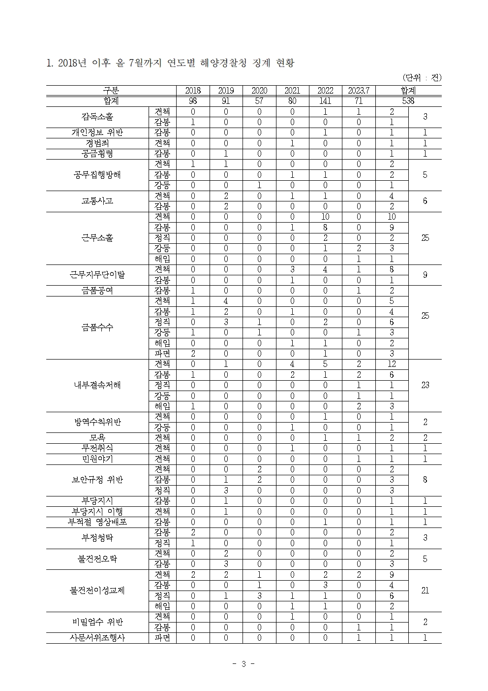 [윤준병 의원 국정감사 보도자료] 윤준병 의원, 오염물질 해양투기 금지에도 5년간 불법투기 1,700건