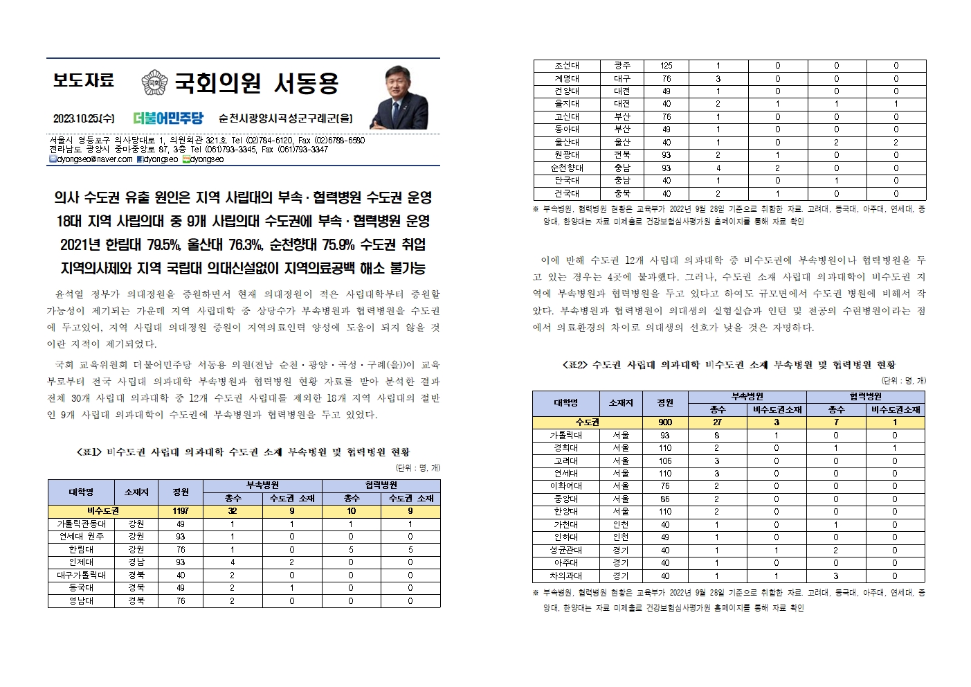 231025_국감_서동용_의사_수도권_유출_원인은_지역_사립대의_부속·협력병원_수도권_운영.hwp