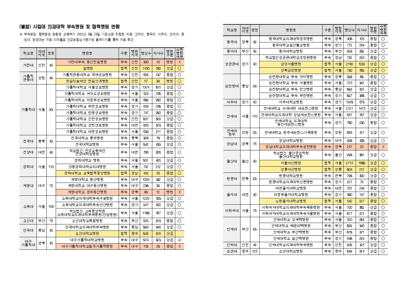 [서동용 의원] 의사 수도권 유출 원인은 지역 사립대의 부속·협력병원 수도권 운영