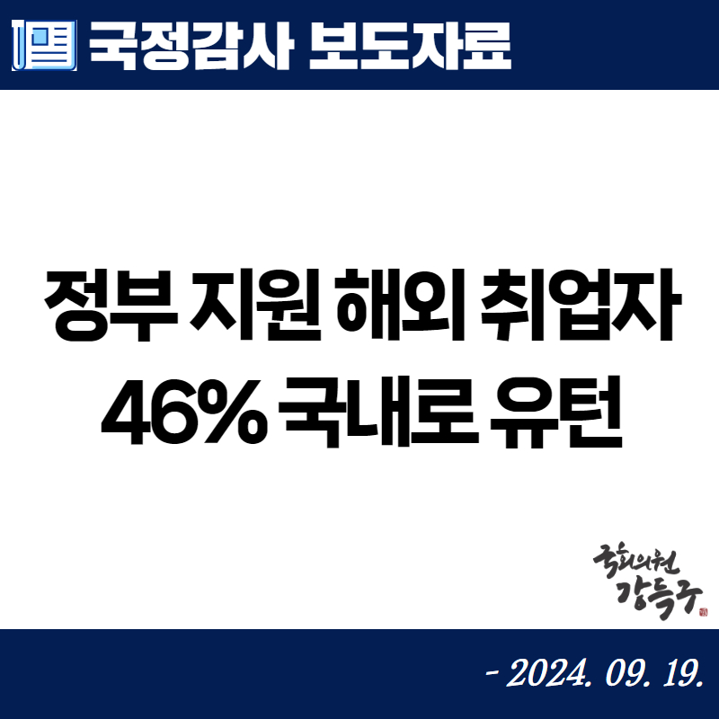 [국회의원 강득구] 정부 지원 해외 취업자 46% 국내로 유턴