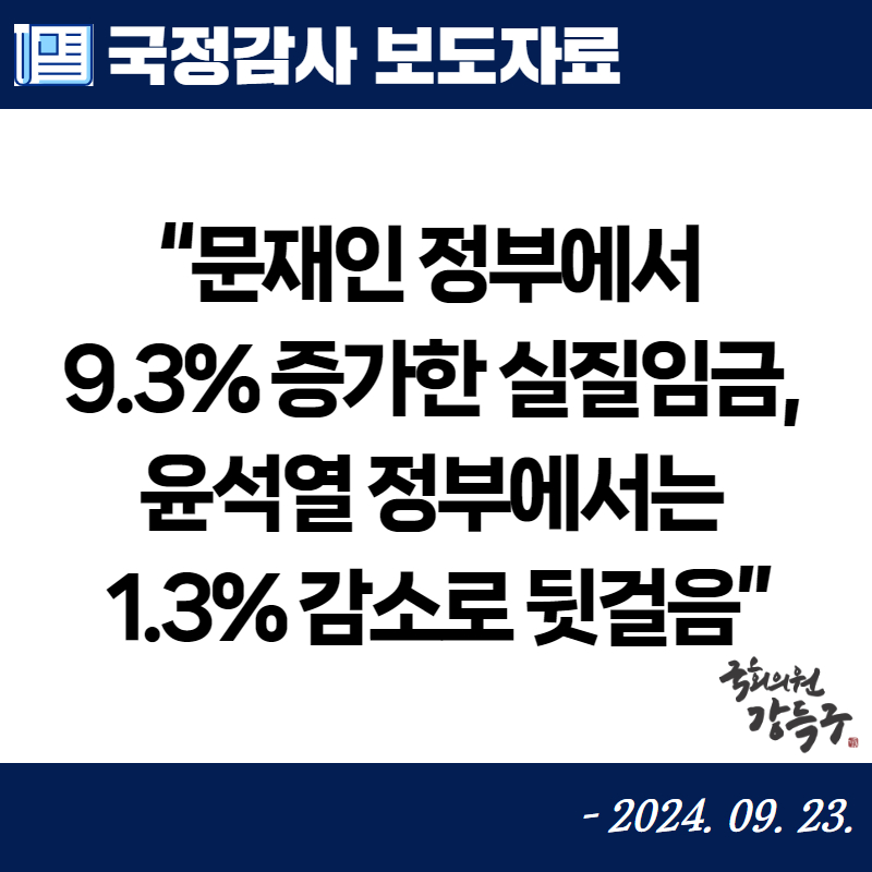 강득구 의원, “문재인 정부에서 9.3% 증가한 실질임금, 윤석열 정부에서는 1.3% 감소로 뒷걸음”