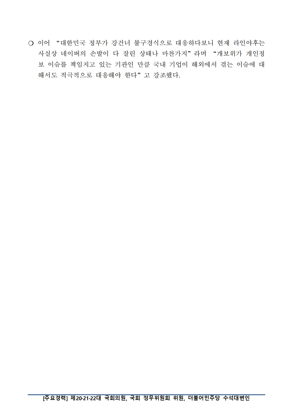 조승래 의원 “일본의 라인야후 대응 질문 끝내 무시한 개보위”.hwp